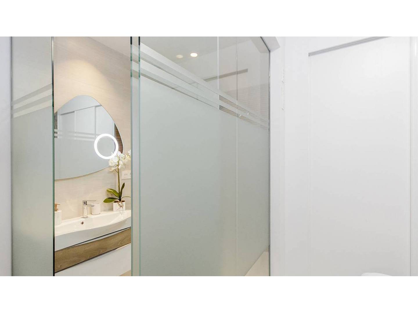 Het huis is een begane grond van 98 m2 gebouwd die is verdeeld in een zeer lichte woon-eetkamer die via een groot raam in verbinding staat met het privébalkon en waardoor de zonnestralen overdag binnenkomen. De keuken is voorzien van bijpassende inbouwapparatuur, marmeren tegels en kranen zijn bij de prijs inbegrepen, 3 slaapkamers, 2 badkamers met vloerverwarming: een en-suite en een apart, en een patio van 24 m2.
