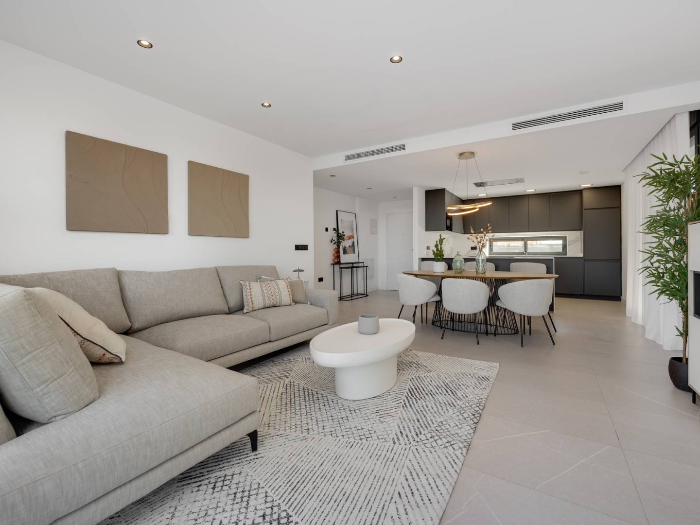 Położona w pięknym mieście Torrevieja, ta ekskluzywna kolekcja 16 domów wolnostojących oferuje idealne miejsce dla osób poszukujących domu na Costa Blanca. Zaledwie 2 km od morza, te nieruchomości pozwalają cieszyć się morską bryzą i śródziemnomorskim klimatem. Dodatkowo, lotnisko znajduje się 42 km od osiedla, co ułatwia dojazd osobom często podróżującym. Domy zostały zaprojektowane z myślą o komforcie i funkcjonalności, a ich układ obejmuje 3 sypialnie i 2 łazienki, idealne dla rodzin lub par poszukujących przestrzeni i prywatności.