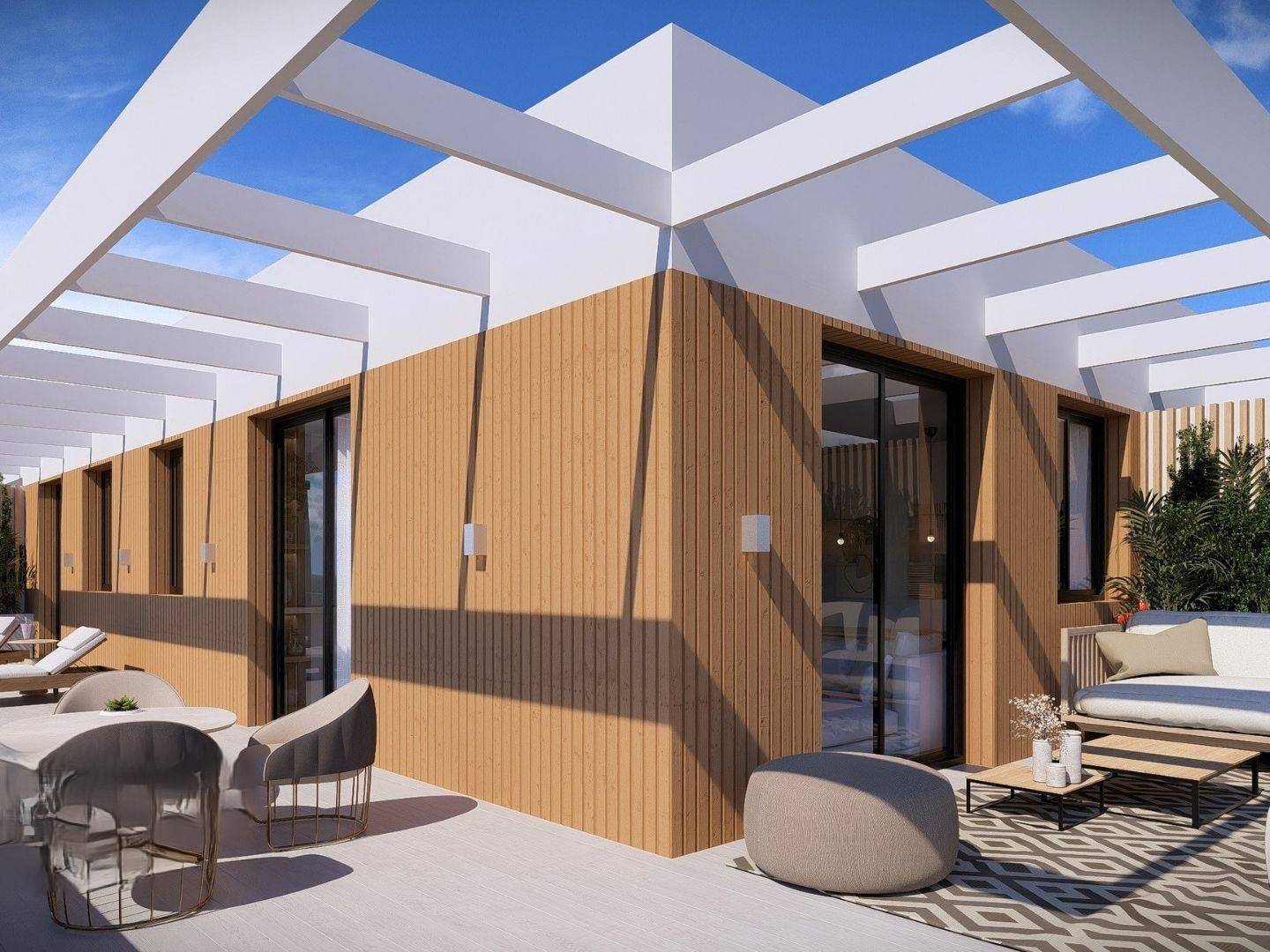 Elewacje tych nieruchomości w Jávea zostały zaprojektowane tak, aby maksymalnie wykorzystać śródziemnomorski klimat. Każdy dom posiada prywatny taras, idealny do relaksu na świeżym powietrzu. Dodatkowo, parter posiada własne ogrody, oferujące dodatkową przestrzeń do wypoczynku i rekreacji. Kompleks mieszkaniowy oferuje również stacje ładowania samochodów elektrycznych, promując zrównoważony i nowoczesny styl życia. Bliskość morza, zaledwie 2 km, pozwala na spacery wzdłuż wybrzeża i uprawianie sportów wodnych.