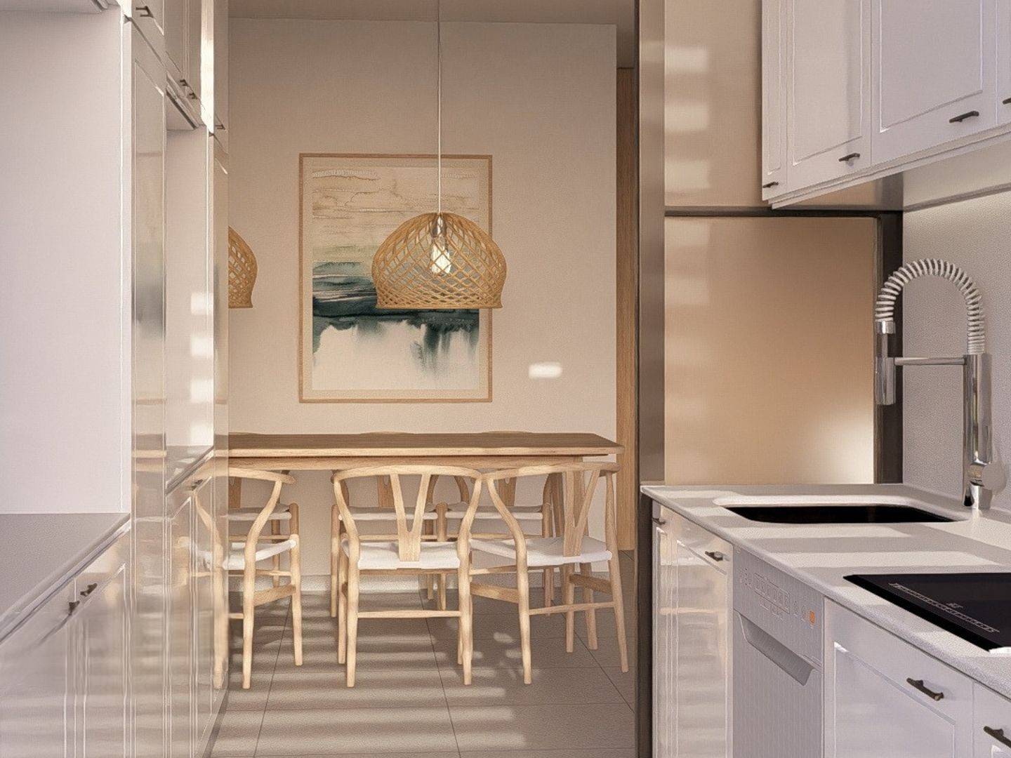 Wnętrza domów zaprojektowano z myślą o komforcie i stylu. Apartamenty, partery i penthousy oferują 2 lub 3 sypialnie i 2 łazienki, dostosowując się do zróżnicowanych potrzeb rodzin. Wbudowane szafy zapewniają mnóstwo miejsca do przechowywania, a zintegrowane urządzenia AGD zapewniają nowoczesne i funkcjonalne warunki do życia. Podłoga z płytek porcelanowych dodaje elegancji i ułatwia codzienne utrzymanie czystości. Dodatkowo, wideodomofon zapewnia mieszkańcom poczucie bezpieczeństwa i spokoju.