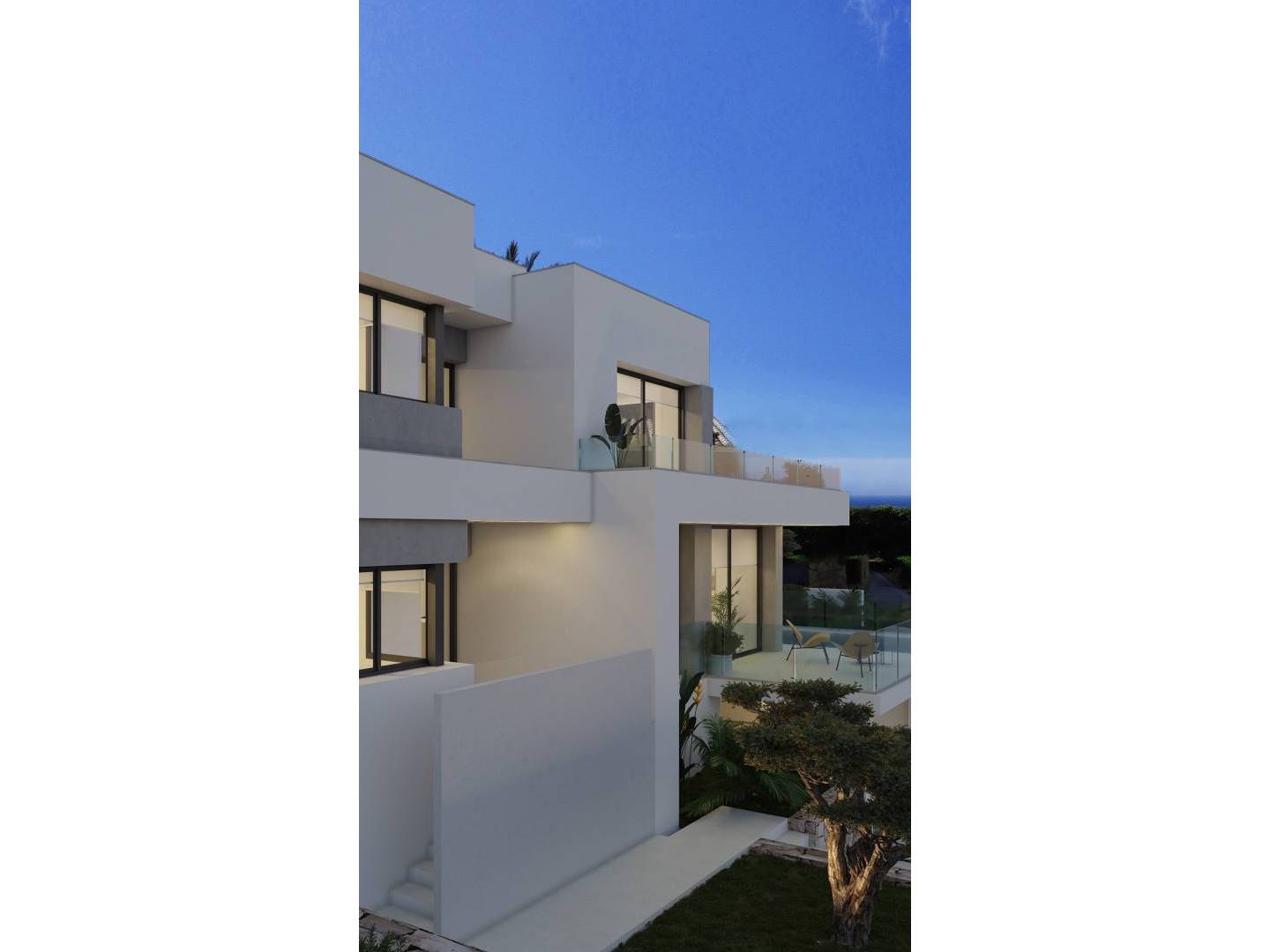 Architektura tych willi w Benitachell została zaprojektowana tak, aby w pełni wykorzystać naturalne otoczenie i widok na morze. Każda willa posiada prywatny taras, idealny na relaks i delektowanie się śródziemnomorskim klimatem. Prywatny ogród tworzy spokojną, zieloną oazę. Prywatny basen zapewnia niczym niezakłócone chwile relaksu i rozrywki. Pergola zapewnia cień i dodatkową przestrzeń do spotkań towarzyskich na świeżym powietrzu.