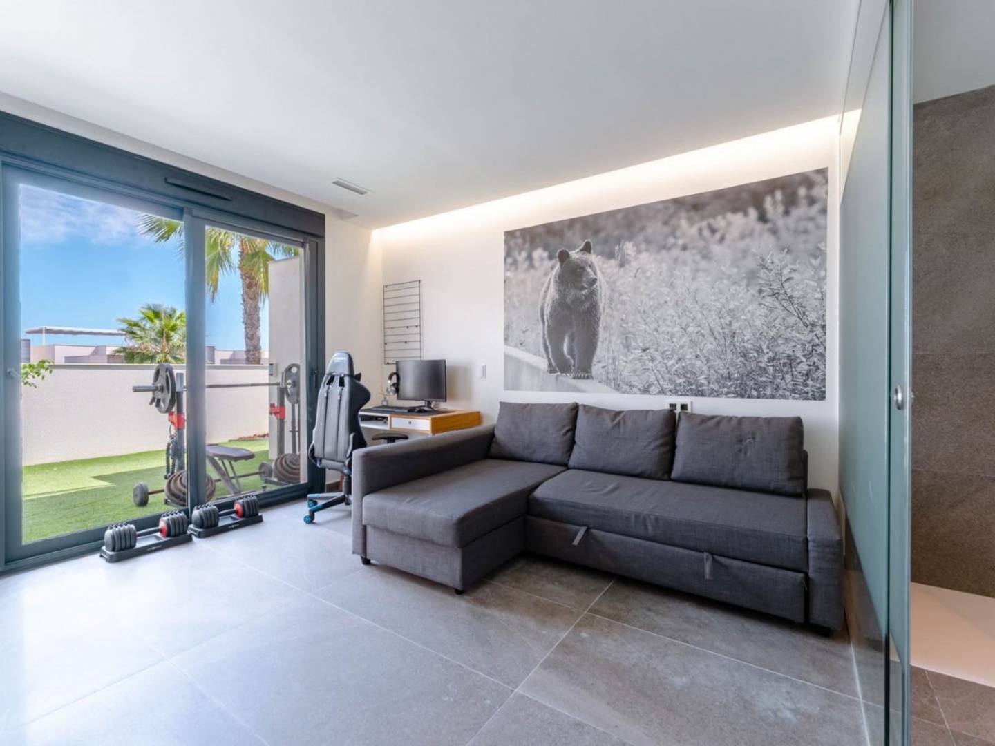 Wspaniała luksusowa willa na sprzedaż w San Miguel de Salinas, 6 km od najpiękniejszych plaż Costa Blanca, ze wszystkimi podstawowymi usługami, jakie miasto może zaoferować w mniej niż 10 minut spacerem, aptekami, supermarketami, sklepami, barami, restauracjami itp. Idealne miejsce na wakacje lub pobyt przez cały rok, ponieważ do dyspozycji jest szeroki wachlarz atrakcji: najlepsze pola golfowe (Villamartín Golf), jazda konna, wszystkie sporty wodne, jakie można sobie wyobrazić, centra handlowe pełne zabawy i rozrywki, szeroki wybór barów i restauracji, w których można delektować się najlepszymi śródziemnomorskimi doznaniami kulinarnymi. Dom o powierzchni 274 m², rozłożony na dwóch piętrach, na pierwszym piętrze dwie sypialnie, jedna z nich z łazienką en-suite i łazienką dla gości, a także garderoba, salon wraz ze spektakularną kuchnią w stylu amerykańskim z barem śniadaniowym. Willa jest wyposażona w duży garaż z miejscem na 2 samochody i dwie w pełni wyposażone kuchnie. Piwnica ma osobne wejście i uniwersalny układ. Znajdują się w niej trzy sypialnie, z których dwie mają własne łazienki, biuro i pralnia, a także bezpośredni dostęp do garażu.