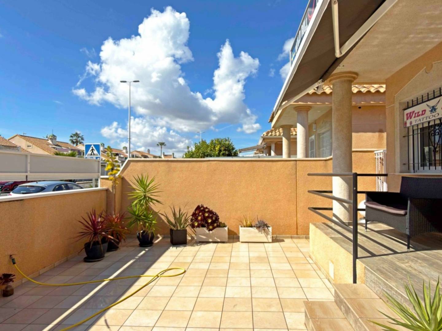 Położony w samym sercu dzielnicy La Zenia, ten pięknie odnowiony bungalow oferuje wyjątkową okazję do posiadania wszechstronnej nieruchomości w odległości spaceru od plaży i bulwaru Zenia. Nieruchomość została niedawno gruntownie odnowiona, w tym wymieniono podłogi, zainstalowano nowoczesne okna, zmodernizowano kuchnię i stylową łazienkę, tworząc jasne i nowoczesne środowisko życia. Bungalow oferuje 2 sypialnie i 1 łazienkę, wszystkie dogodnie rozmieszczone na jednym poziomie, co czyni go idealnym miejscem do wygodnego zamieszkania. Na zewnątrz znajduje się taras na parterze od strony południowej z prywatnym parkingiem, idealny do cieszenia się śródziemnomorskim klimatem przez cały rok. Nieruchomość posiada również zadaszony ganek (porche) i prywatny taras na dachu, oferujący dodatkową przestrzeń na zewnątrz do relaksu, opalania się lub przyjmowania gości. Obecnie nieruchomość jest wykorzystywana jako studio tatuażu, ale można ją łatwo przekształcić z powrotem w dom mieszkalny z minimalnymi lub bez modyfikacji, co czyni ją interesującą ofertą zarówno dla osób prywatnych, jak i inwestorów. Dzięki doskonałej lokalizacji w La Zenia, blisko plaż, restauracji, sklepów i wszelkich udogodnień, nieruchomość ta stanowi doskonałą okazję na zakup domu wakacyjnego, stałego miejsca zamieszkania lub koncepcję prowadzenia działalności gospodarczej na Costa Blanca.
