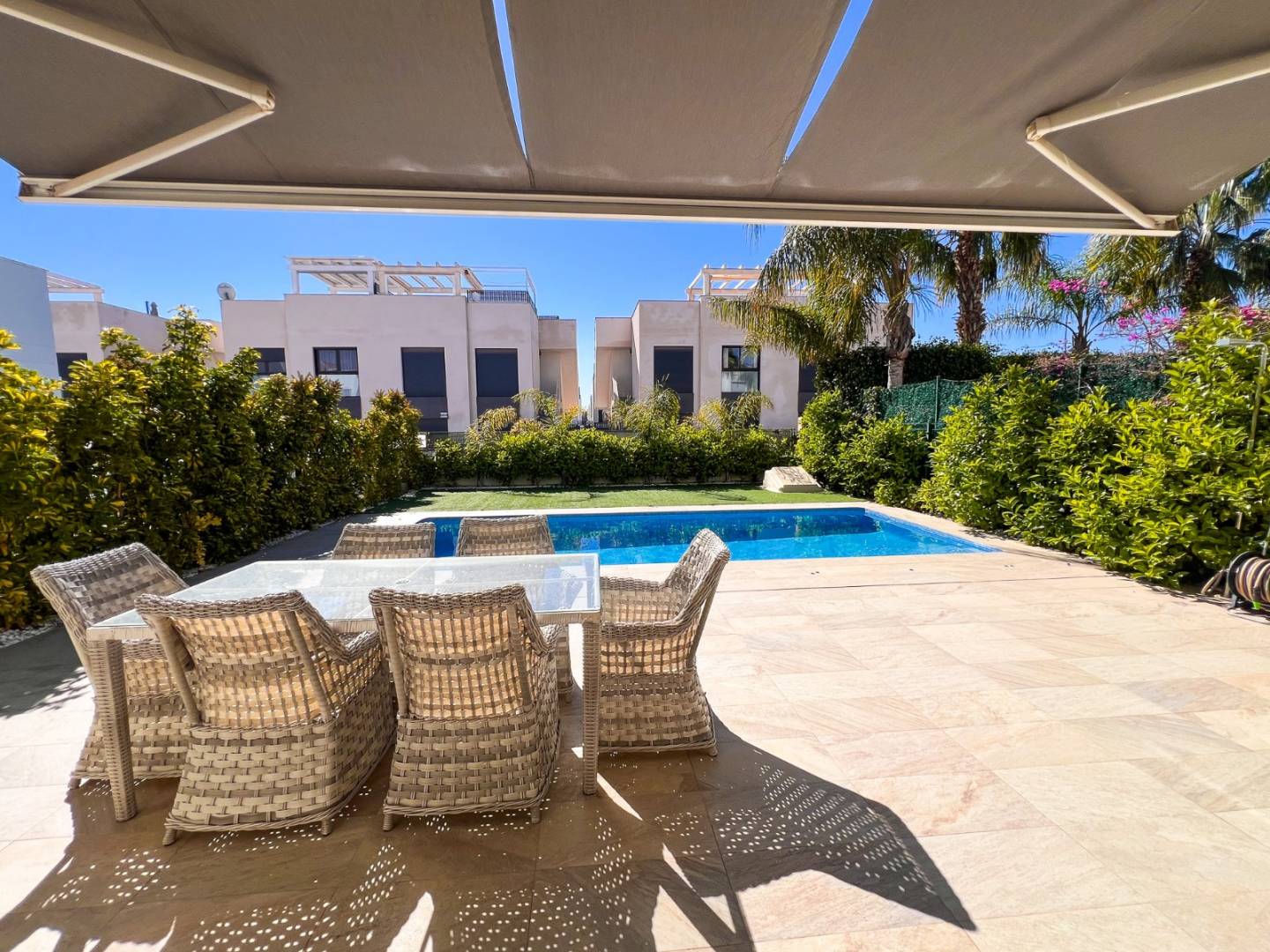 Odkryj tę nowoczesną, wolnostojącą willę, wybudowaną w 2014 roku, zaprojektowaną dla osób ceniących prywatność , mnóstwo naturalnego światła i całoroczny komfort . Położona w Ciudad Quesada , zaledwie 7 km od plaż Guardamar del Segura i kilka minut od wszystkich udogodnień, willa oferuje idealną równowagę między spokojem a wszystkimi wygodami codziennego życia . Nieruchomość położona jest na działce o powierzchni 300 m² z pięknie zagospodarowanym terenem zewnętrznym, w tym prywatnym basenem o wymiarach 8 x 3,5 metra – idealnym do cieszenia się śródziemnomorskim klimatem – oraz zadaszonym miejscem parkingowym .