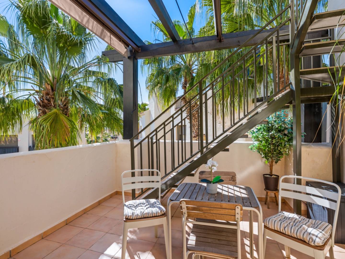 Odkryj ten piękny , gotowy do zamieszkania, designerski apartament w prestiżowym ośrodku Roda Golf & Beach Resort , jednym z najbardziej pożądanych adresów na Costa Cálida . Dzięki doskonałej lokalizacji od strony południowej, apartament jest doskonale doświetlony naturalnym światłem przez cały dzień , co pozwala w pełni cieszyć się przestronnym tarasem z widokiem na ogród i spektakularnymi zachodami słońca. Schody z tarasu prowadzą na imponujący, prywatny taras na dachu z panoramicznym widokiem – idealne miejsce na relaks, opalanie się lub spędzanie ciepłych wieczorów na świeżym powietrzu w pełnej prywatności.