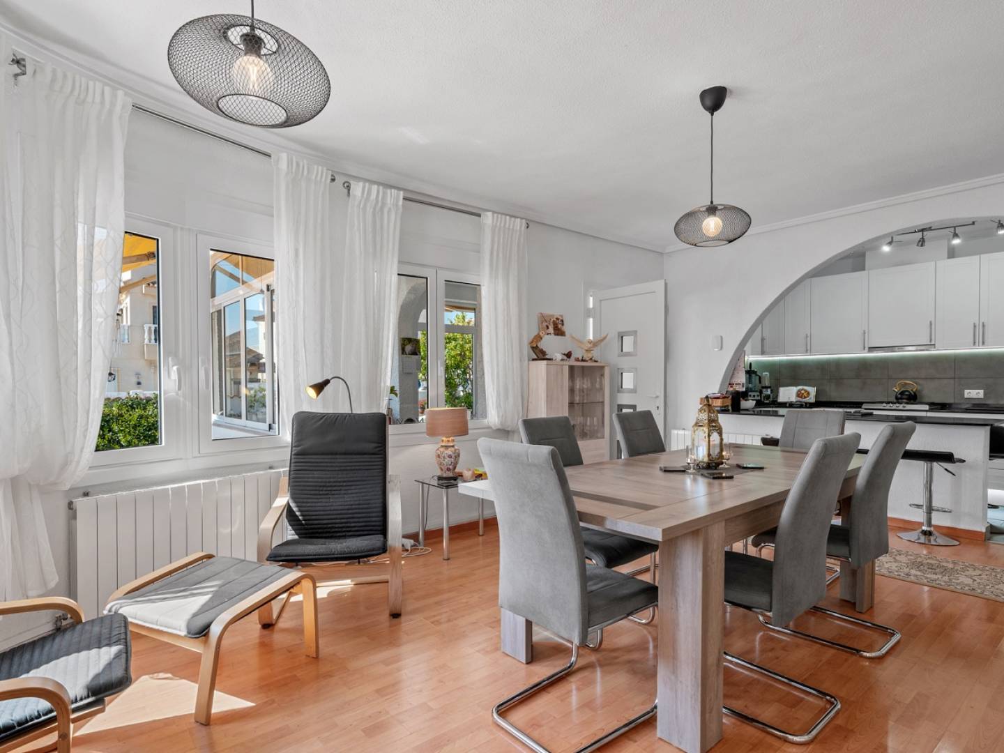 Odkryj ten piękny, wolnostojący dom na przestronnej działce o powierzchni 500 m² – idealny dla osób poszukujących spokoju, prywatności i komfortu w uprzywilejowanej lokalizacji. Główny dom o powierzchni 104 m² został zaprojektowany tak, aby maksymalnie wykorzystać każdą przestrzeń i idealnie połączyć funkcjonalność, naturalne światło i styl . Posiada dwie sypialnie i dwie łazienki , z których jedna jest en-suite , zapewniając absolutny komfort i prywatność. Dom oferuje nowoczesną i przestronną kuchnię z otwartą przestrzenią i jadalnią , idealną na rodzinne spotkania, oraz jasny salon do relaksu. Dodatkowo, nieruchomość posiada przeszkloną werandę , zapewniającą wyjątkowo jasną przestrzeń o różnorodnym przeznaczeniu. Na piętrze znajduje się oddzielny apartament z sypialnią, kuchnią i łazienką z prysznicem – idealny dla gości, na wynajem sezonowy lub do użytku osobistego. Na zewnątrz znajduje się piękny prywatny ogród , altana , grill , prywatny basen i jacuzzi – idealne miejsce do cieszenia się śródziemnomorskim klimatem przez cały rok. Zadaszony garaż i dodatkowe miejsce parkingowe dla wielu pojazdów dopełniają tę nieruchomość. Dom wyposażony jest w centralne ogrzewanie olejowe, grzejniki i klimatyzację , co gwarantuje optymalny komfort przez cały rok. Nieruchomość jest starannie utrzymana i gotowa do zamieszkania , co czyni ją idealną na główne miejsce zamieszkania, drugi dom lub wysokiej jakości inwestycję .