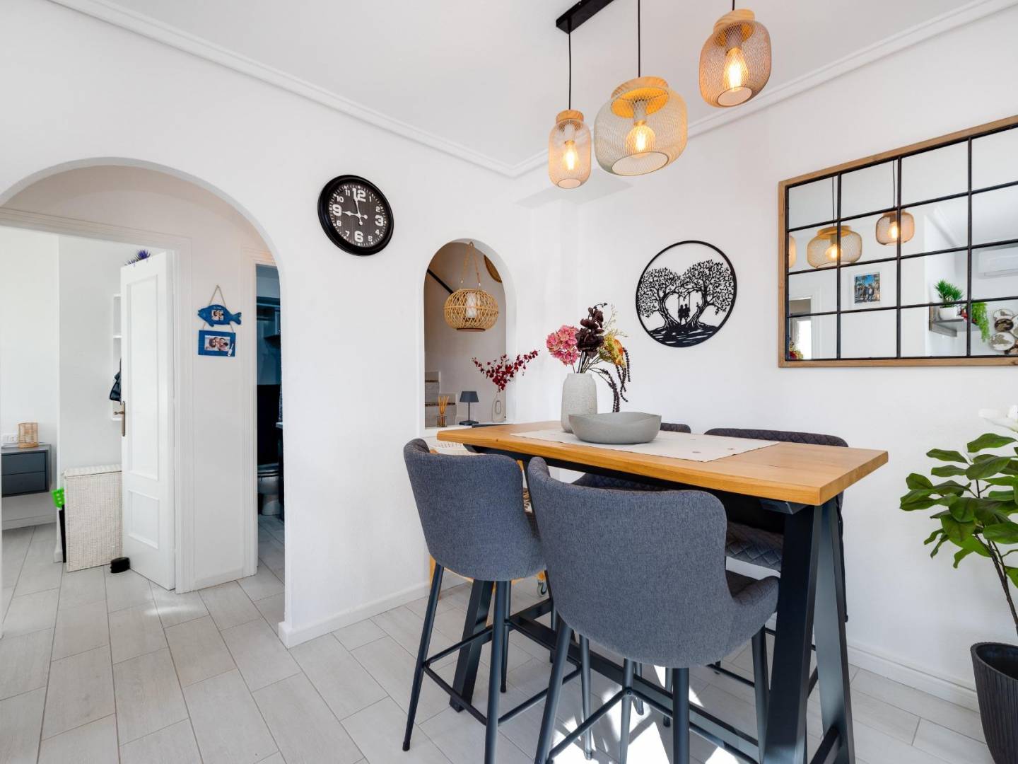 Prezentujemy Państwu ten elegancki dom narożny w Los Altos , idealny jako główny lub drugi dom na Costa Blanca . W pełni umeblowana nieruchomość oferuje trzy przestronne sypialnie i dwie nowoczesne łazienki , oferując komfort i funkcjonalność dla całej rodziny. Duży, prywatny taras zachęca do korzystania ze śródziemnomorskiego klimatu przez cały rok. Przyjemna weranda i prywatny podjazd dopełniają całości. Do dyspozycji Gości jest również pomieszczenie gospodarcze i spiżarnia z dużą ilością miejsca do przechowywania. Na parterze znajduje się duży taras, który oferuje miejsce do relaksu z dostępem do prywatnego solarium z zapierającymi dech w piersiach widokami – prawdziwa atrakcja. Kompleks oferuje wspólne baseny , tereny zielone i bezpłatne korty do padla dla mieszkańców , zaledwie 300 metrów od nieruchomości. Prywatne, numerowane miejsce parkingowe zapewnia wygodę i bezpieczeństwo. Doskonała lokalizacja: zaledwie 10 minut od Torrevieja i blisko La Zenia z plażami , udogodnieniami, restauracjami i sklepami. Idealny dom na Costa Blanca dla osób poszukujących słońca, spokoju, prywatności i wysokiej jakości życia .