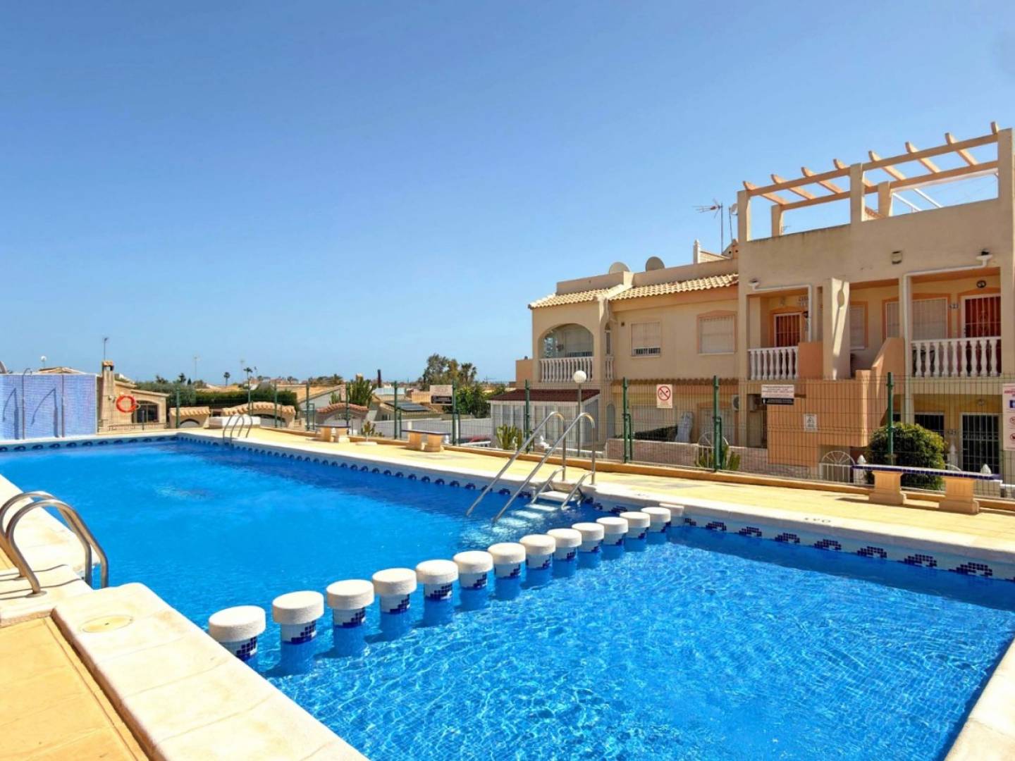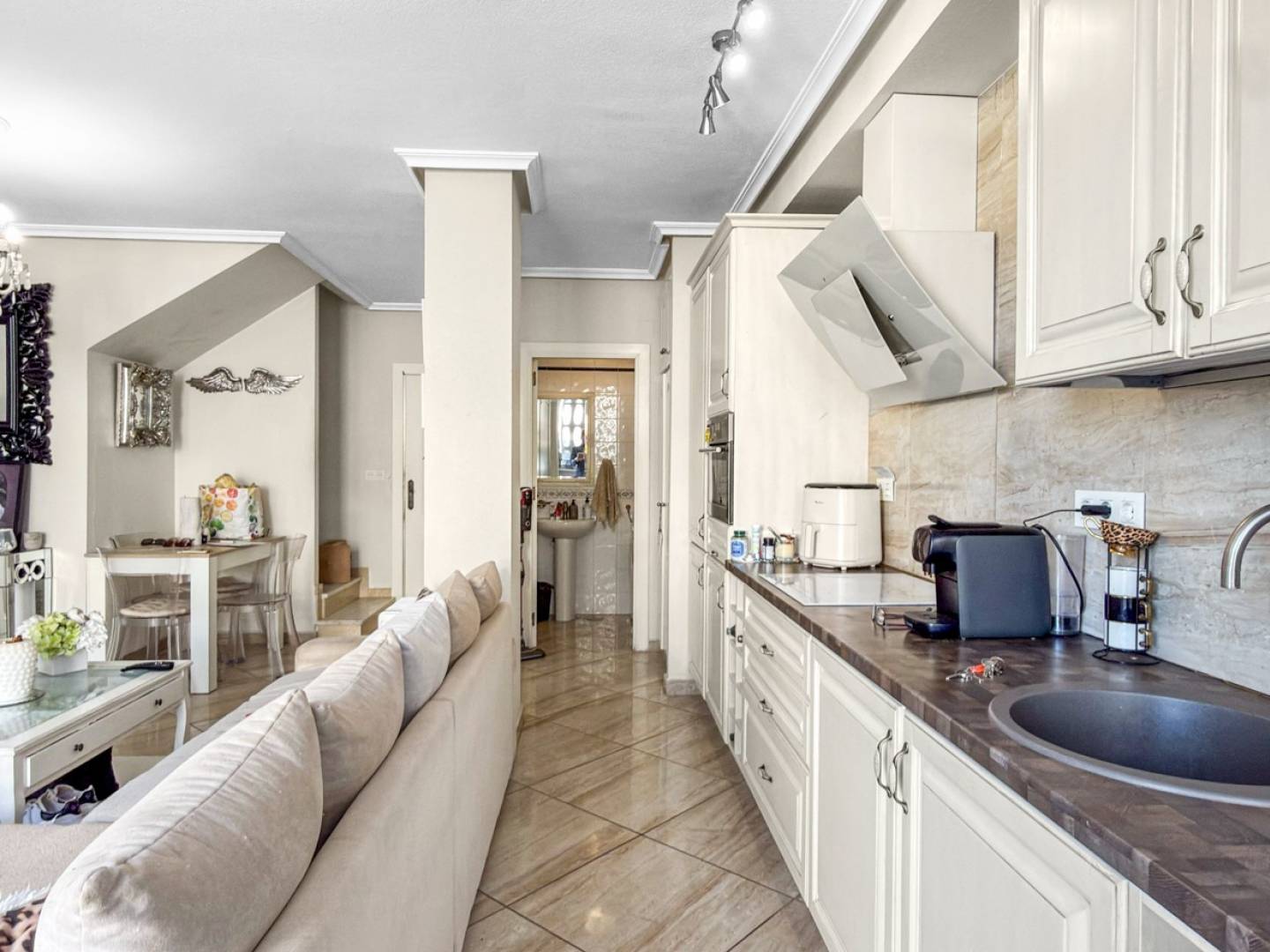 Wejdź do tego pięknie odnowionego domu szeregowego w pożądanej dzielnicy La Florida – gdzie nowoczesny komfort spotyka się ze śródziemnomorskim stylem życia. Niedawno odnowiony w wysokim standardzie, dom oferuje jasny i otwarty salon z jadalnią, płynnie połączony z przestronnym, słonecznym tarasem dużymi, przesuwnymi drzwiami. To tworzy idealne połączenie przestrzeni wewnętrznej i zewnętrznej, idealne do relaksu lub spotkań towarzyskich przez większą część roku. Na piętrze znajdują się dwie przestronne sypialnie i dwie łazienki, a także fantastyczny taras słoneczny na dachu na trzecim piętrze – z miejscem do przechowywania i możliwością łatwego stworzenia trzeciej sypialni, jeśli zajdzie taka potrzeba. Dom jest częścią cichej i zadbanej społeczności, z dużym wspólnym basenem i zielonym otoczeniem. Wszystkie niezbędne udogodnienia, takie jak restauracje, bary, sklepy i parki, znajdują się w odległości krótkiego spaceru, a piękne plaże Orihuela Costa oddalone są o niecałe 10 minut jazdy samochodem. Główne cechy 3-piętrowy dom szeregowy o powierzchni 100 m² 2 sypialnie (opcjonalnie 3) 2 łazienki Duży słoneczny taras Prywatny solarium ze schowkiem Wbudowane szafy Wspólny basen Doskonała lokalizacja blisko wszystkich udogodnień