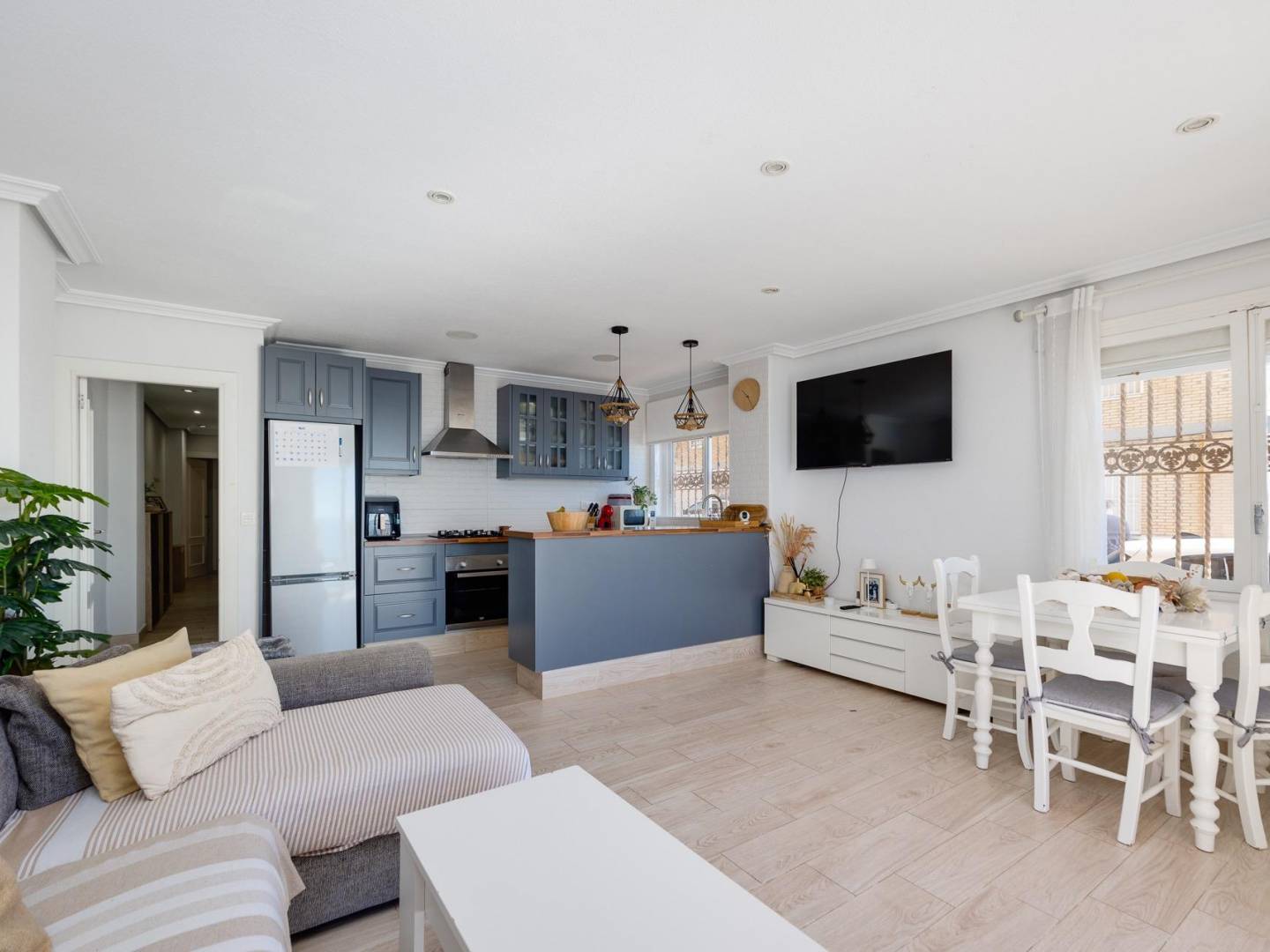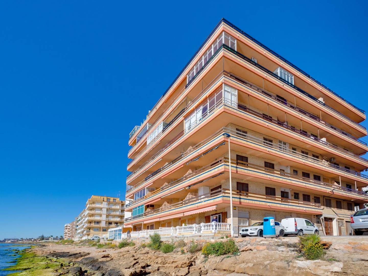 Odkryj ten piękny apartament na parterze, tuż przy morzu , zaledwie 50 metrów od Playa de los Náufragos , jednej z najbardziej pożądanych lokalizacji na Costa Blanca. Ten elegancki apartament oferuje wyjątkowe doznania mieszkaniowe dzięki zapierającym dech w piersiach widokom na morze z salonu i kuchni, tworząc niezrównane połączenie z Morzem Śródziemnym. Apartament posiada osobne wejście , gwarantujące prywatność i komfort, oraz uroczy prywatny taras/werandę , idealny do opalania się przez cały rok. Składa się z przestronnego salonu/jadalni , nowoczesnej kuchni otwartej na salon , trzech sypialni dwuosobowych i łazienki – wszystkie z jasnymi przestrzeniami na zewnątrz i zapierającymi dech w piersiach widokami. Nieruchomość położona jest w szybko rozwijającej się dzielnicy, w pobliżu supermarketów, restauracji i innych udogodnień . Dzięki doskonałemu dostępowi do drogi N-332 można szybko dotrzeć do ekskluzywnych dzielnic, takich jak Punta Prima i La Zenia . Zaledwie 5 minut jazdy samochodem do Torrevieja to kolejny atut. Niepowtarzalna okazja dla każdego, kto szuka wysokiej jakości nieruchomości bezpośrednio przy plaży , niezależnie od tego, czy ma być to główne miejsce zamieszkania, nieruchomość inwestycyjna czy dom wakacyjny.