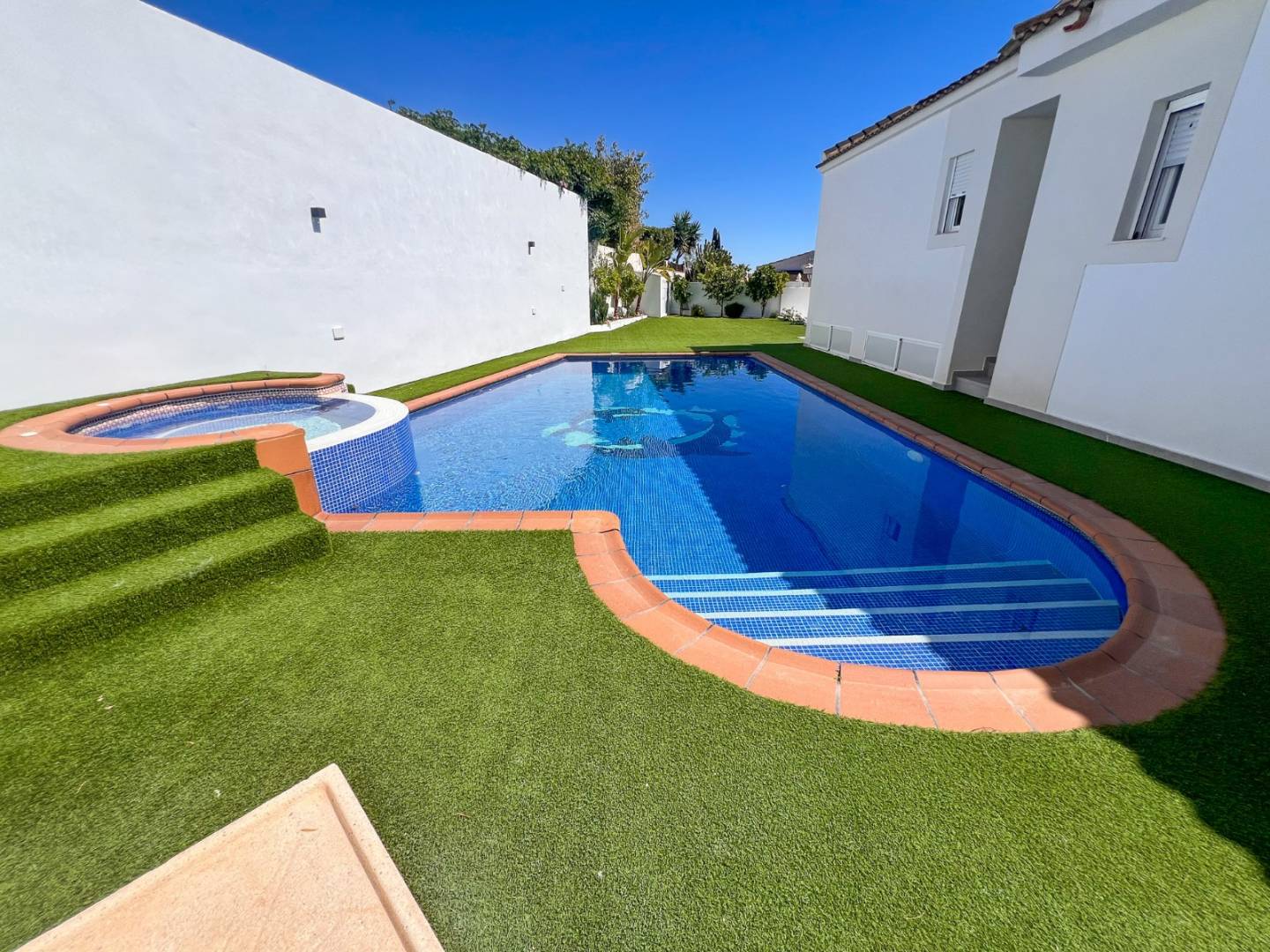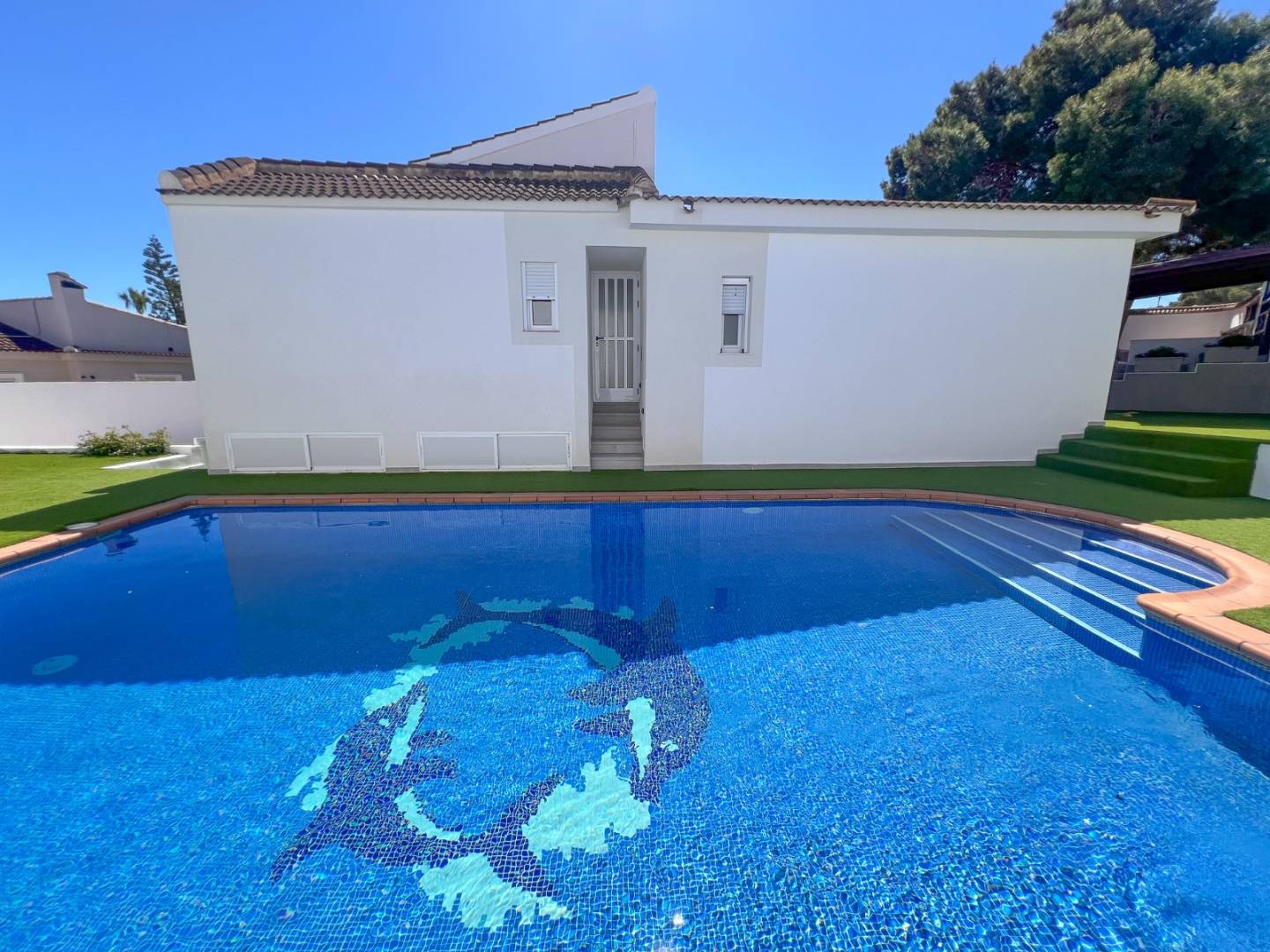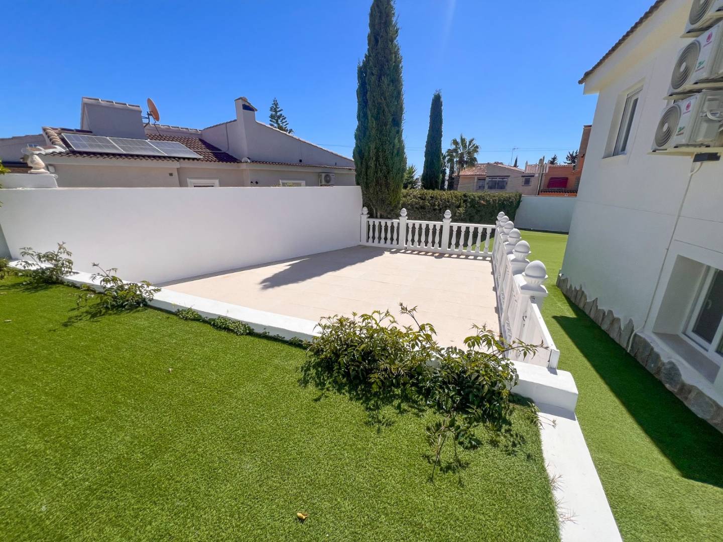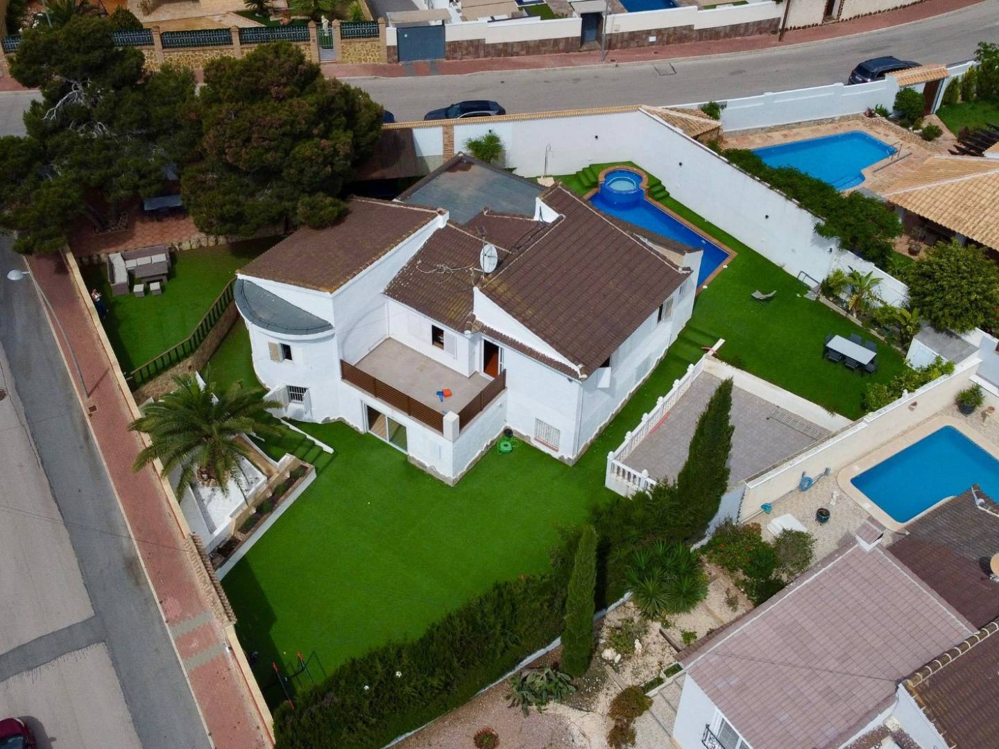 Przestrzeń zewnętrzna podzielona jest na różne strefy i oferuje optymalny komfort życia: z jednej strony zachęcający basen z jacuzzi i prysznicem zachęca do relaksu; w drugim narożniku znajduje się w pełni wyposażony grill , idealny na spotkania towarzyskie; a dodatkowa sala wielofunkcyjna może służyć jako pokój zabaw, strefa relaksu lub do innych celów, w zależności od potrzeb. Po drugiej stronie działki znajduje się duży ogród z tarasem i czterema miejscami parkingowymi, oferujący jeszcze więcej możliwości. Nieruchomość jest sprzedawana bez mebli , co pozwala właścicielowi na całkowitą aranżację wnętrza według własnego gustu. Ta willa w Los Balcones w Torrevieja to solidna inwestycja oferująca wysoką jakość życia i wyjątkowe perspektywy na przyszłość.