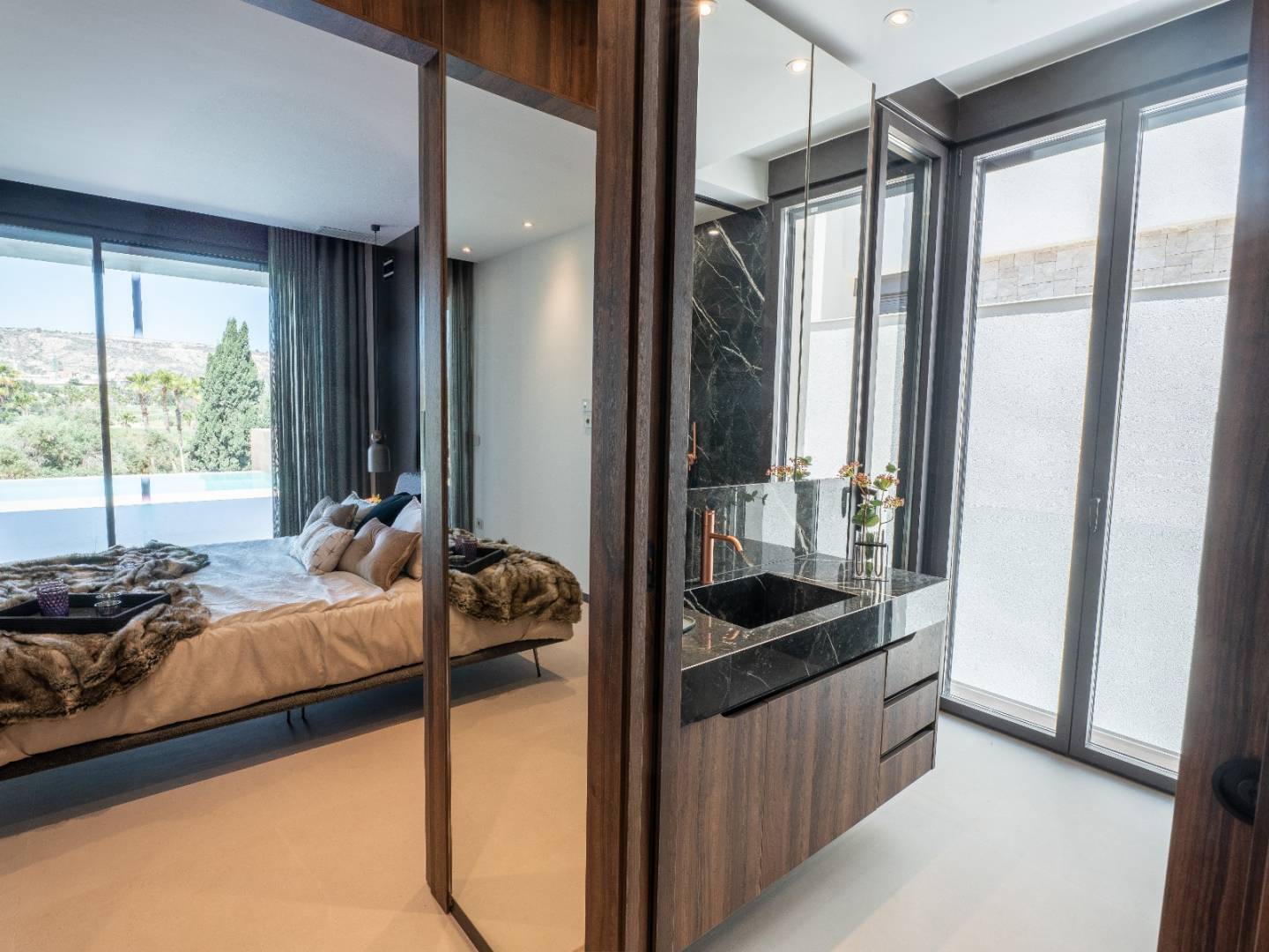 Esta villa de obra nueva ofrece una distribución en dos plantas: sótano y planta baja. Esta vivienda proporciona todas las comodidades, una piscina privada infinity, parking subterráneo, un jardín y vistas al campo de golf.