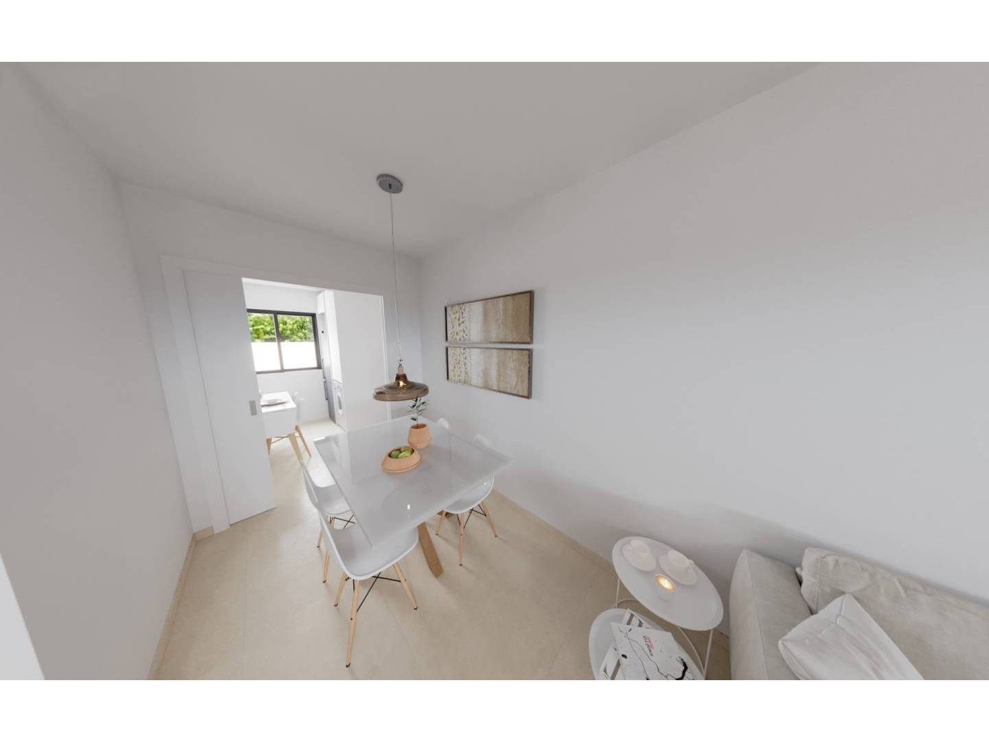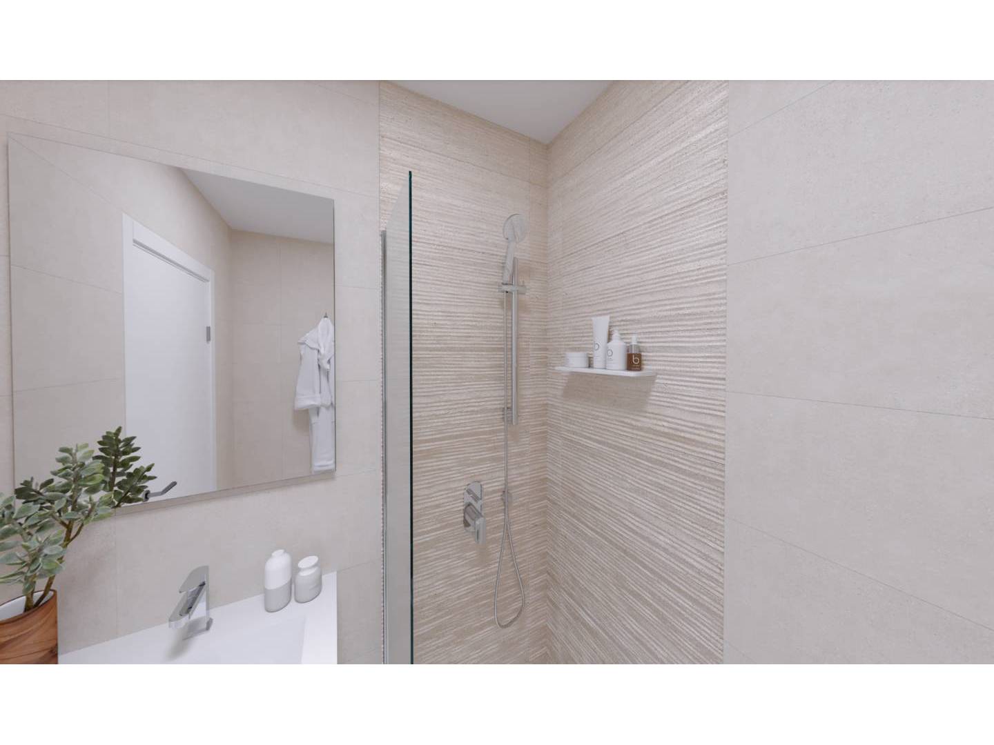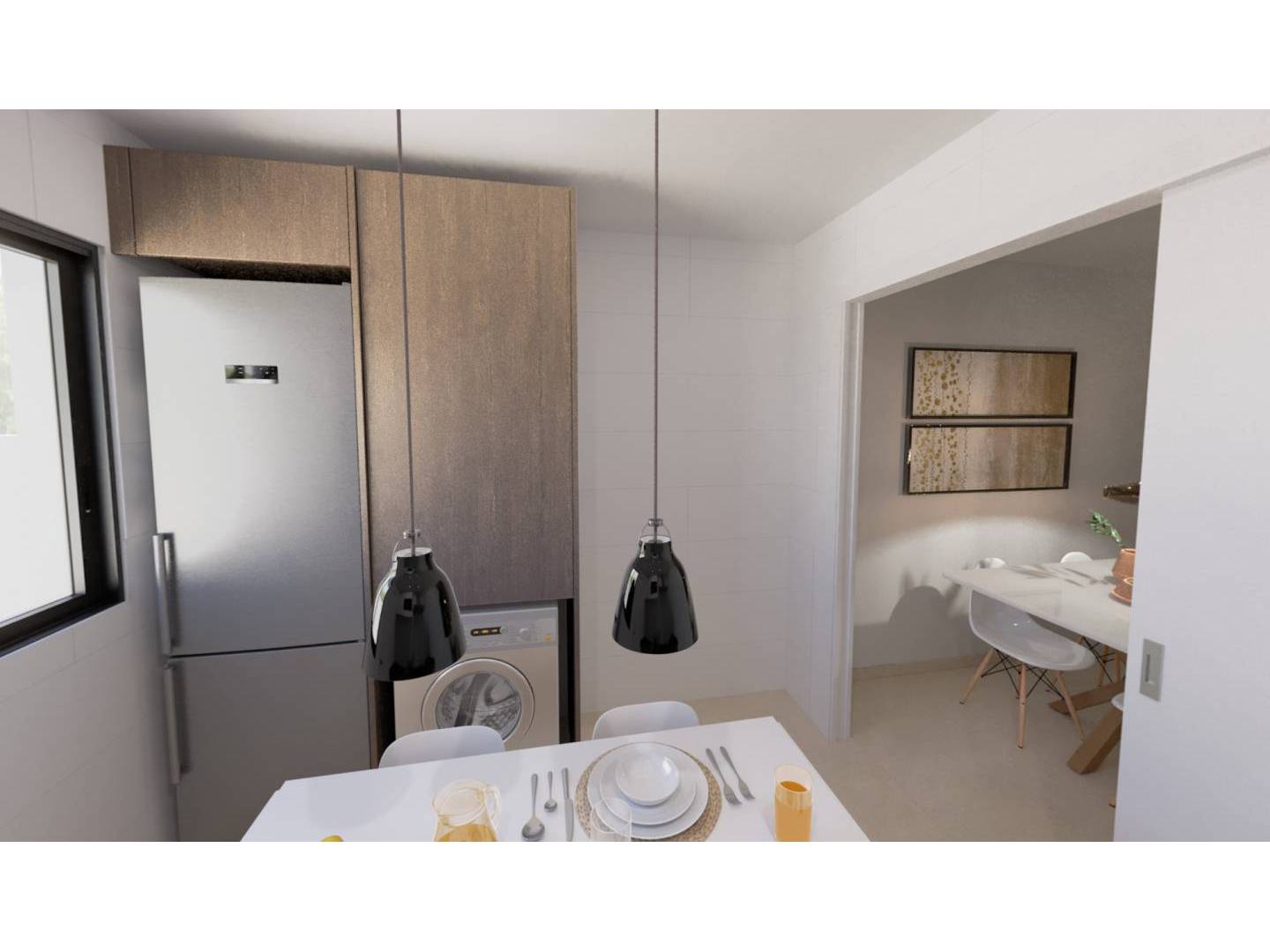 La vivienda se puede distribuir con 2 o 3 dormitorios, con cocina semi independiente o americana, 3 baños y solárium privado en cada vivienda. Los acabados interiores de la vivienda se compondrán por materiales porcelánicos de tonos cálidos, con muebles altos de cocina y electrodomésticos incluidos.
