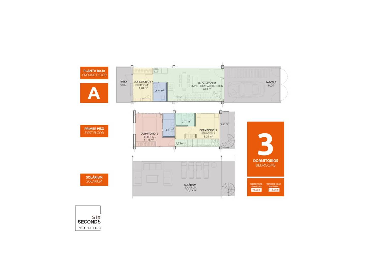 Este modelo tiene dos opciones de distribución interior, obteniendo hasta 3 dormitorios, terraza solárium con acceso privado desde la vivienda.