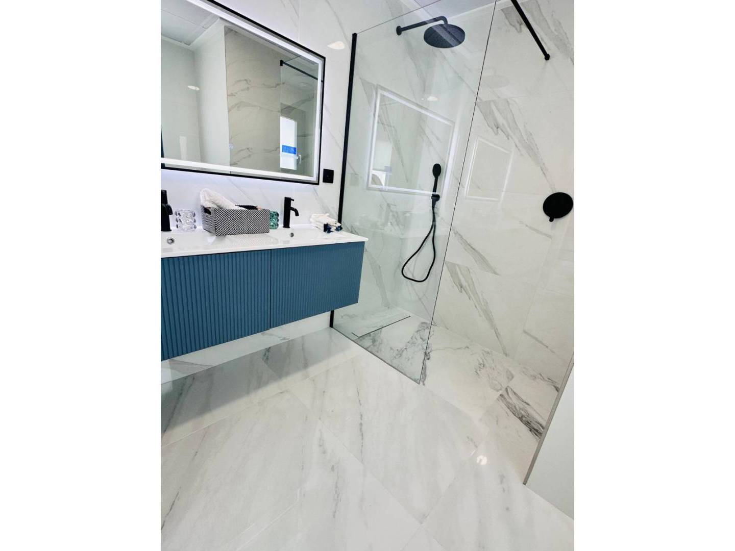 - Grifería monomando de acero cromado y duchas termostáticas.