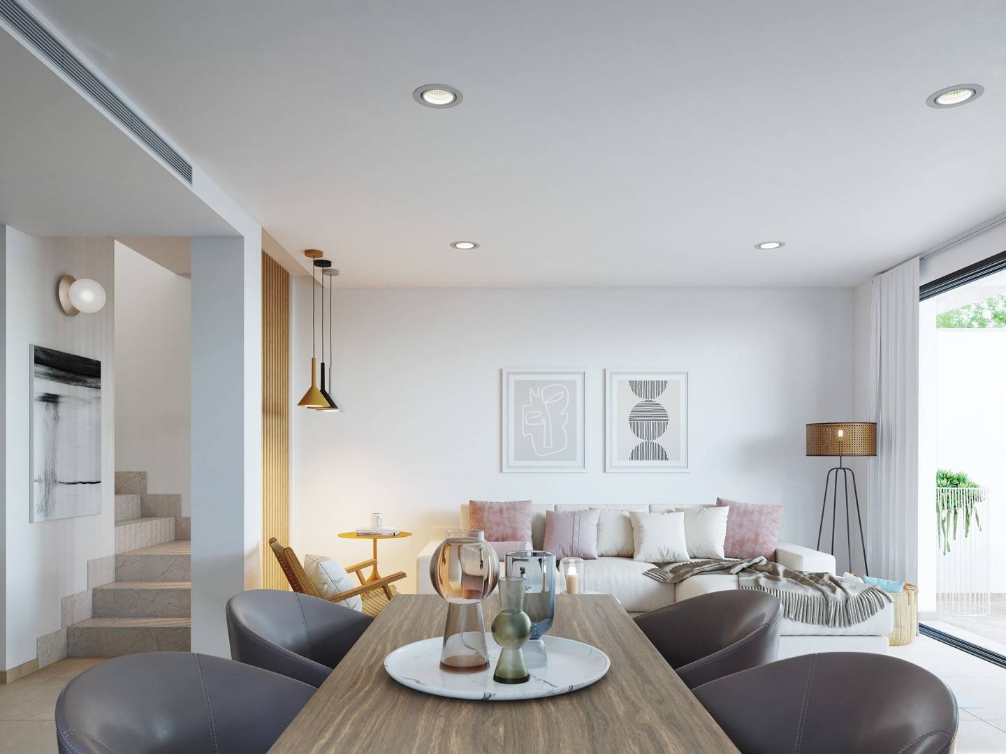 Las viviendas cuentan con una muy cómoda distribución que incluye un salón-comedor, cocina de estilo abierto con una isla (incluye los muebles y electrodomésticos), tres dormitorios (dos de ellos en-suite), tres baños, un gran solárium de 52.35 m2, una terraza con una piscina de 13 m2 para disfrutar el clima de la Costa Cálida durante todos los días del año.