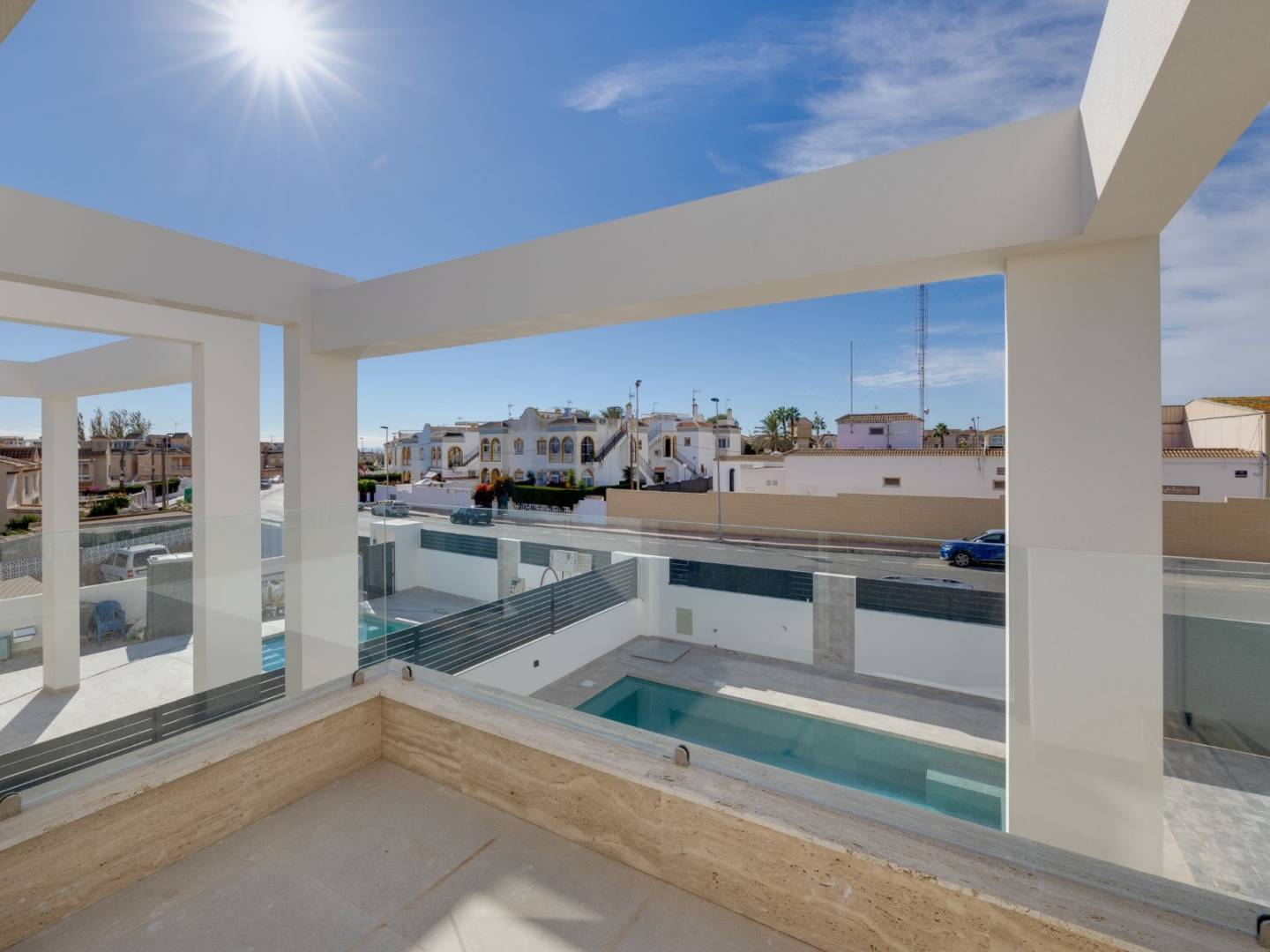 Esta villa de lujo está situada cerca de la playa Cabo Cervera, cerca de todos los servicios como colegios, teatro, transportes, supermercados, tiendas, cafeterías, restaurantes y a sólo 4 minutos de la playa. Hay playas a lo largo de esta costa. La más meridional es la Playa de los Náufragos, en el centro de la ciudad tenemos la Playa del Cura y la Playa de Los Locos. La más larga y septentrional es la playa de La Mata desde donde podemos hacer una excursión al mirador turístico de la Torre del Moro.