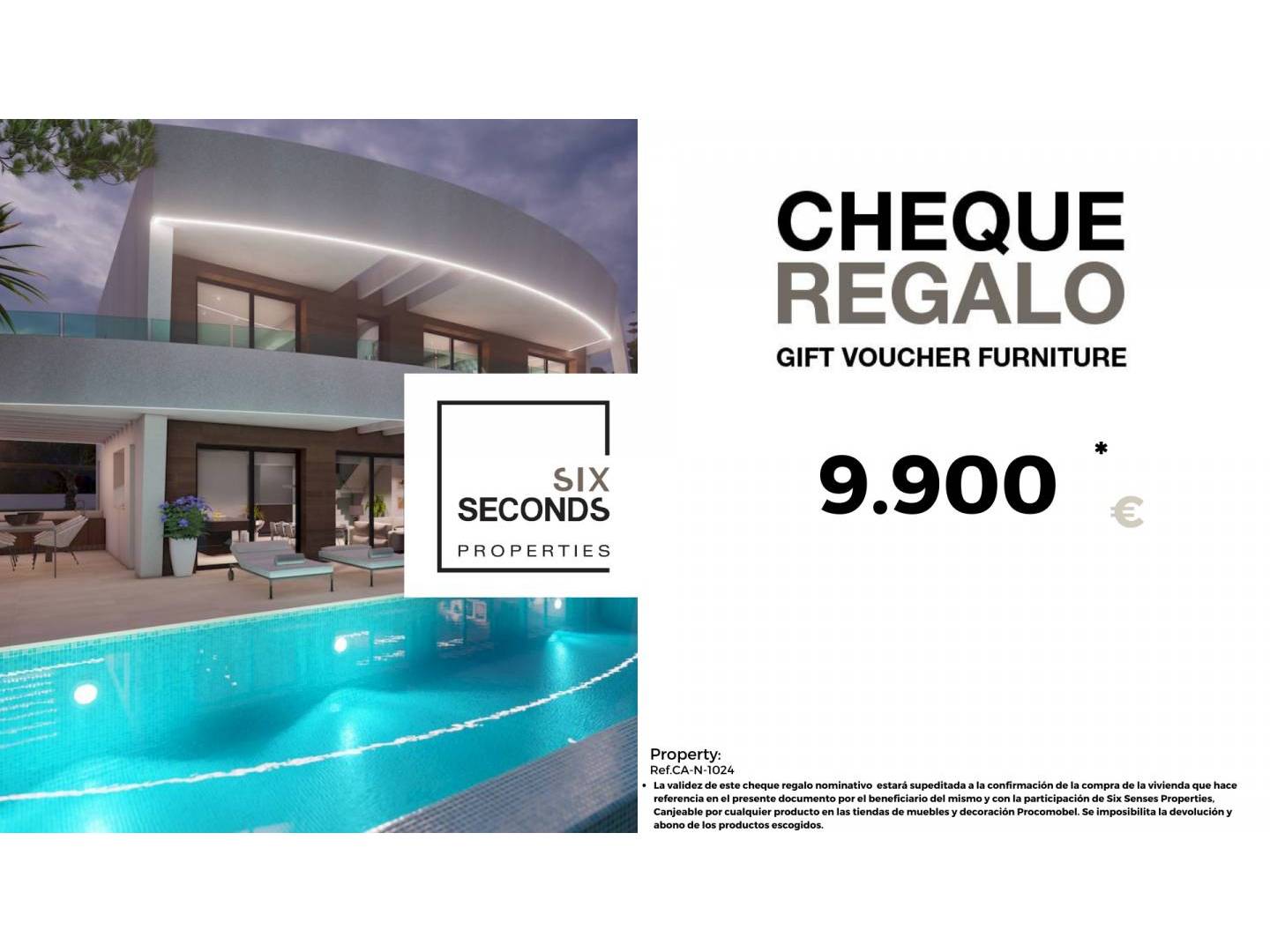 En Six Seconds Properties te ayudamos a convertir tu nueva propiedad en la casa de tus sueños, regalándote un cheque regalo en mobiliario por una cantidad de 9.900€ y una visita técnica de la vivienda, donde nuestro equipo técnico te aconsejará sobre las posibilidades de mejora de la vivienda. Totalmente gratis!!