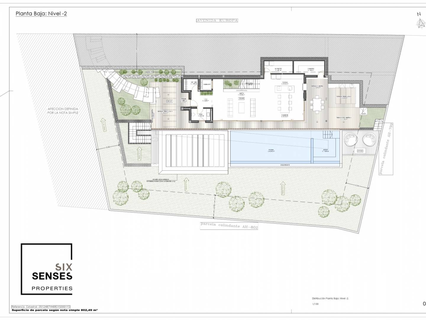 La villa de diseño vanguardista dispone de una parcela de más de 802 m2 y cuenta con una superficie de 440 m2. Tiene 4 dormitorios, cada uno con su propio vestidor, baño y aseo separado; un gran salón con diseño abierto incorpora cocina que crea un espacio único lleno de aire y con vistas panorámicas.