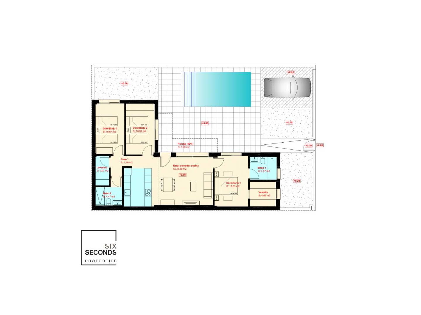 Villas de nueva construcción en una sola planta en la parte nueva de Daya Nueva. A pocos minutos andando del centro del pueblo. La propiedad consta de 3 dormitorios, 2 baños y una piscina privada de 18 m2. Salón / comedor con techo de doble altura, cocina abierta, luz natural y opción para solárium. El dormitorio principal tiene opción de walk-in closet y baños en suite.