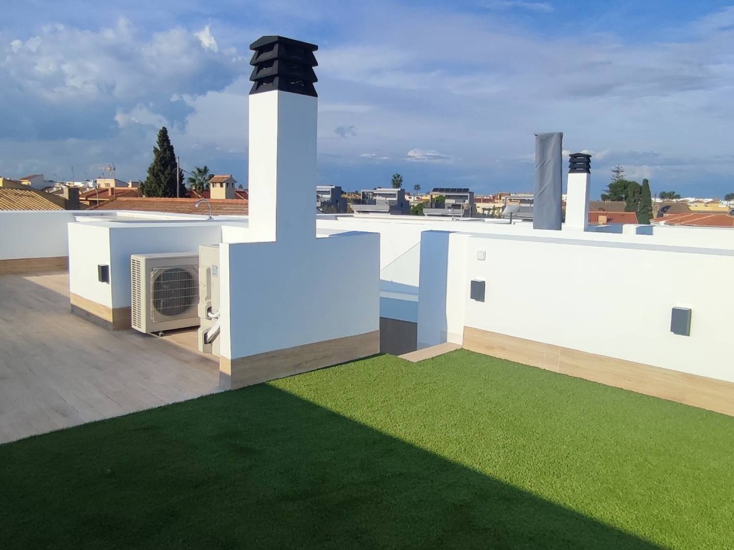 Ofrecemos una villa de lujo de estilo moderno en Torre de la Horadada, Alicante. Consta de 3 dormitorios y 3 baños, solárium privado con barbacoa, piscina privada, jardín con vegetación y parking abierto. La propiedad está situada a poca distancia del mar en una parcela de 200 metros cuadrados aproximados.