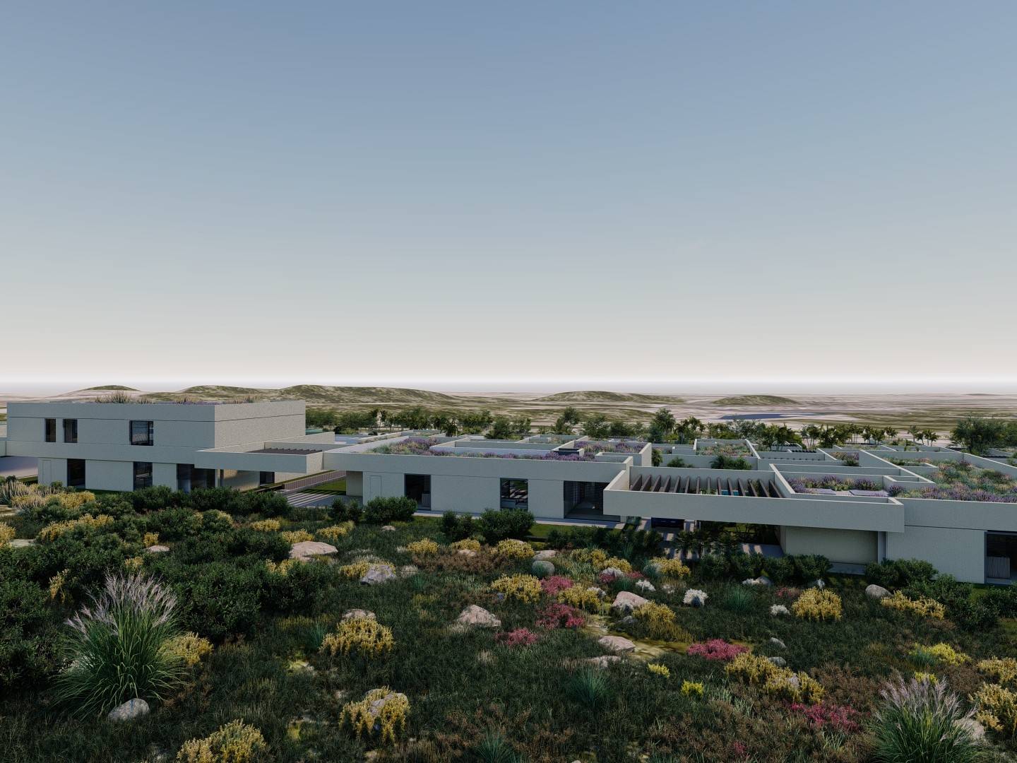 Incluso los techos planos ofrecen vistas verdes, sin importar en qué dirección mires. En un gesto de función y forma, se han colocado plantas autóctonas en los tejados para crear la sensación de otro espacio natural. Además de sus propiedades estéticas y sus aromas, las plantas actúan como repelentes de plagas como avispas y mosquitos para potenciar aún más tu confort.