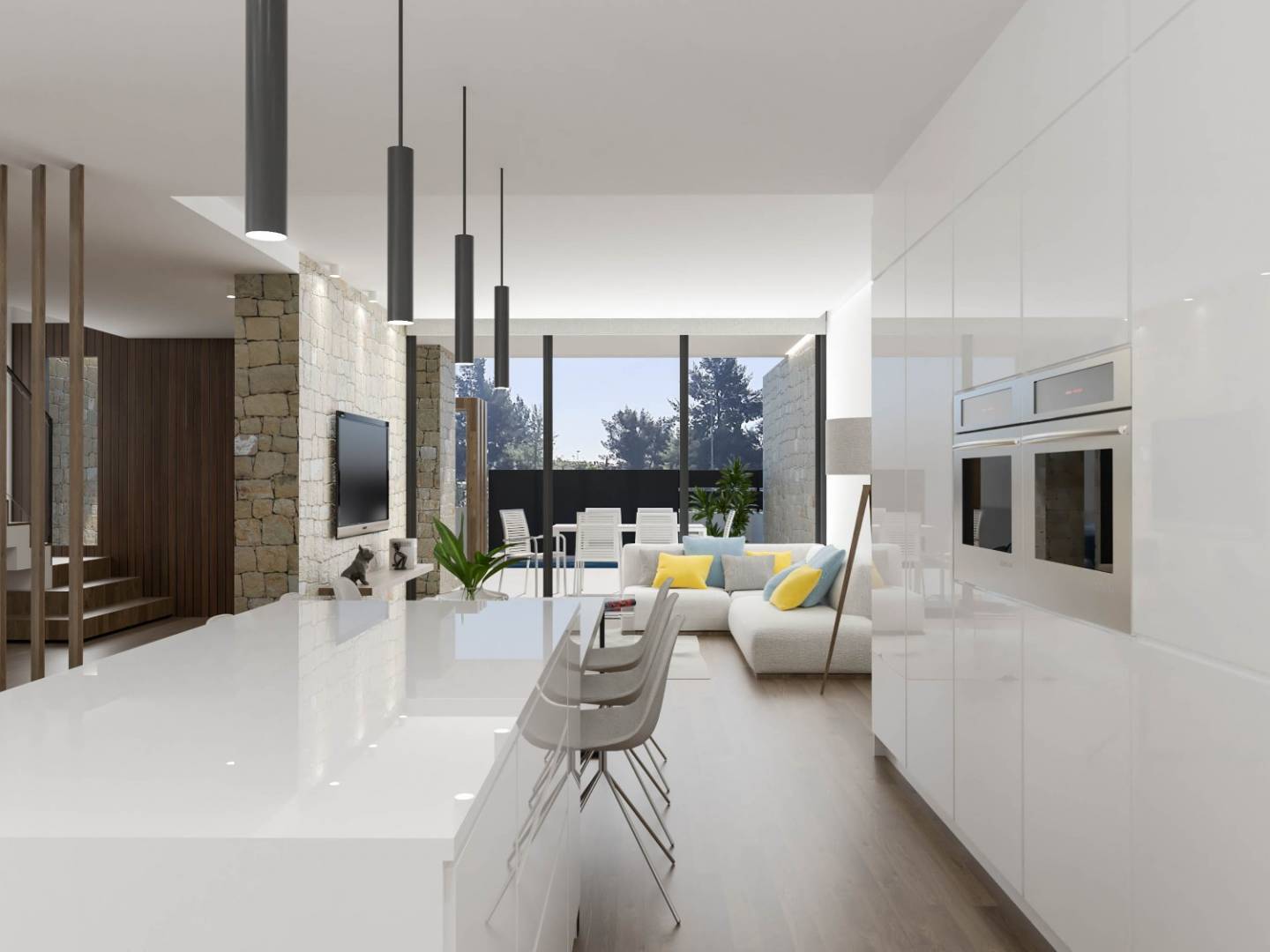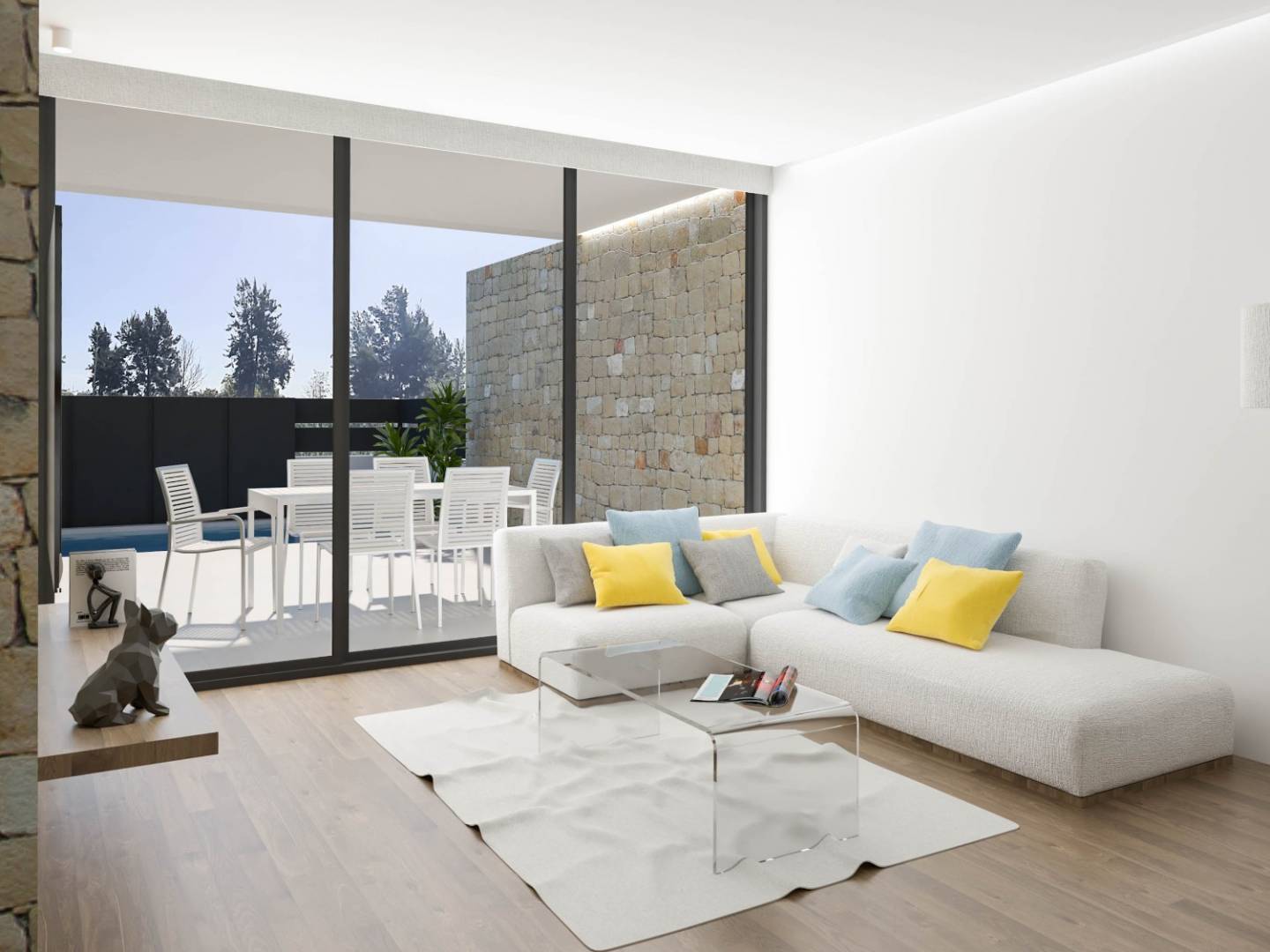 En la planta baja, hay un amplio patio, una moderna cocina abierta y un salón comedor que cuenta con acceso directo a una terraza y piscina privada donde puede disfrutar del tiempo libre sin tener que salir de casa. En la planta superior, se encuentran 3 dormitorios, uno de ellos tiene un vestidor. Además, hay una terraza adicional donde podrá disfrutar del sol y del aire fresco. En total, cada adosado dispone de 3 cuartos de baño, así como de su propia plaza de aparcamiento.