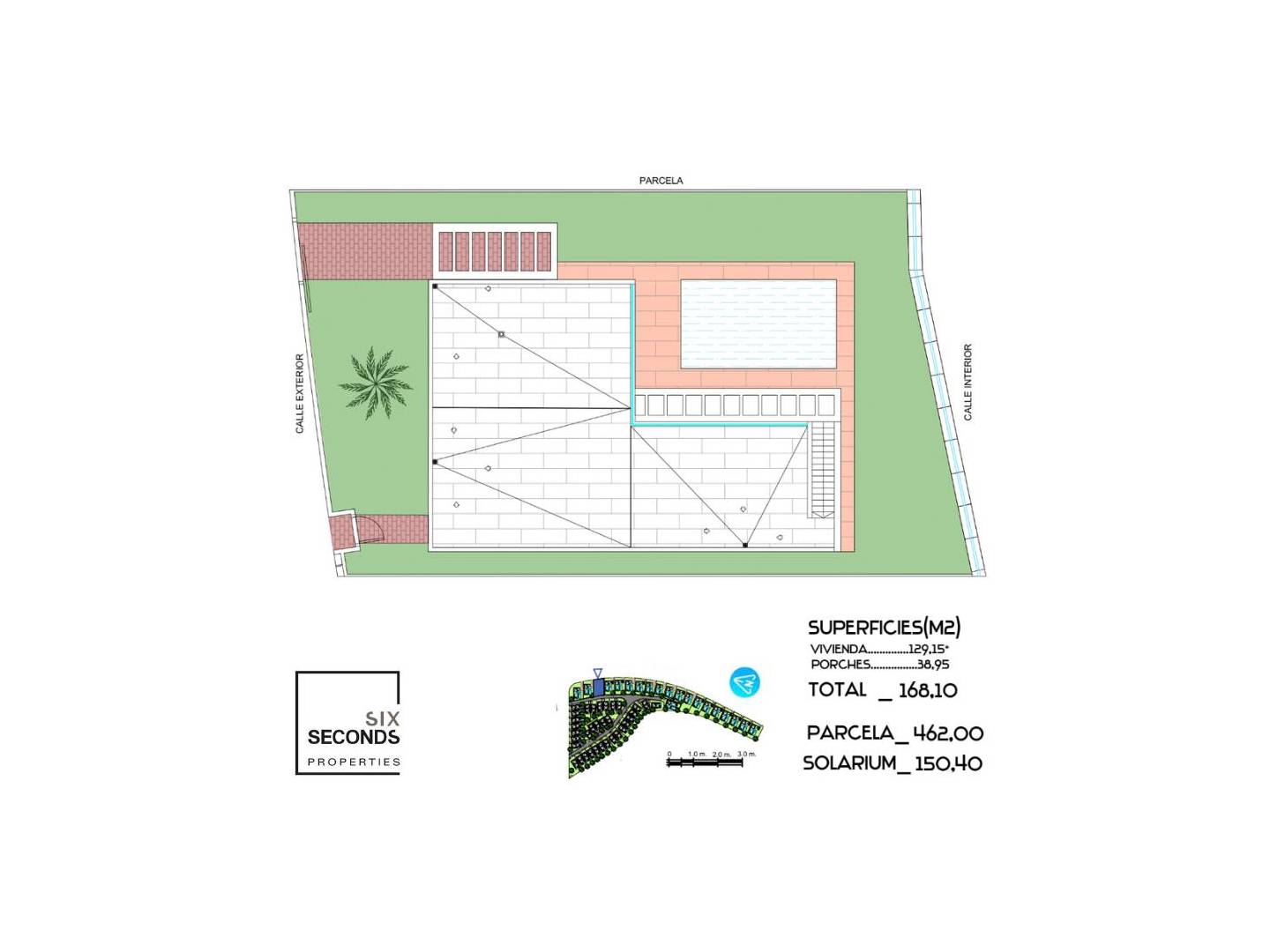 Estas modernas villas están construidas con los más altos estándares de calidad y cuentan con una puerta de entrada blindada para garantizar su seguridad. Hemos creado un espacio único que se adapta perfectamente al entorno mediterráneo, con vistas impresionantes y zonas de jardín cuidadosamente decoradas con césped artificial, grava blanca, palmeras y flores naturales. Y para aquellos que valoran la privacidad, cada villa cuenta con una zona de aparcamiento en la parcela bajo una elegante pérgola decorativa.