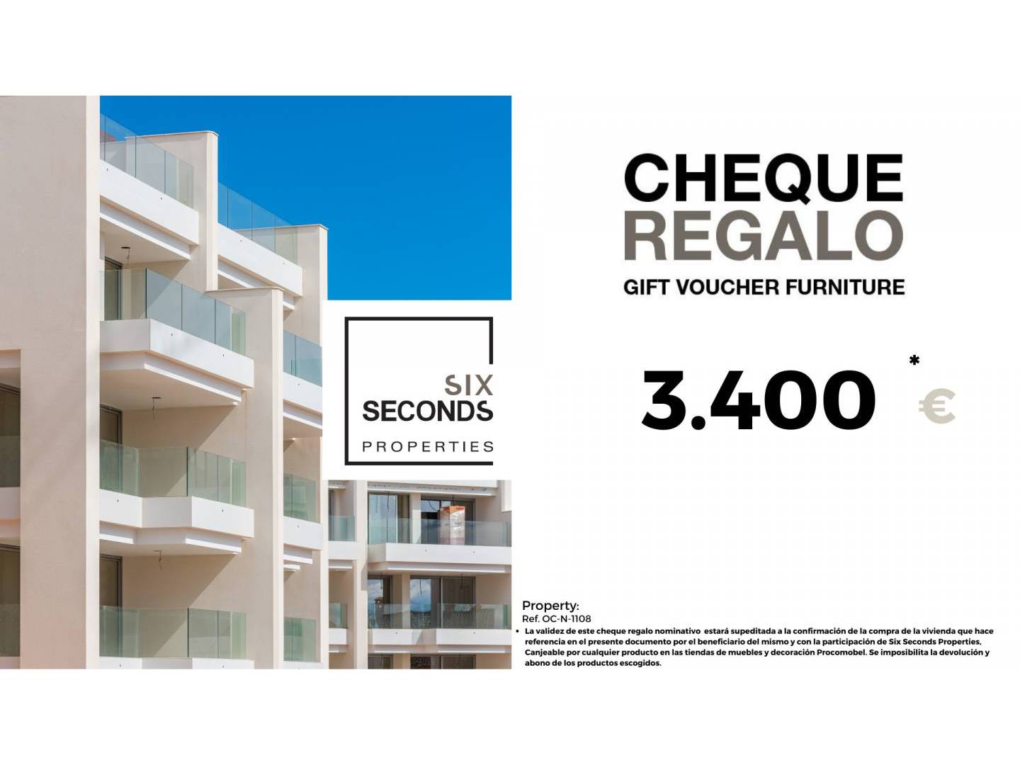 En Six Seconds Properties (965059685) le ayudamos a convertir su nueva propiedad en la casa de tus sueños, regalándole un cheque regalo en mobiliario por una cantidad de 3.400€ y una una visita técnica del departamento de diseño a la vivienda, donde nuestro equipo técnico le aconsejará sobre las posibilidades de mejora y decoración de su propiedad. Totalmente gratis!!