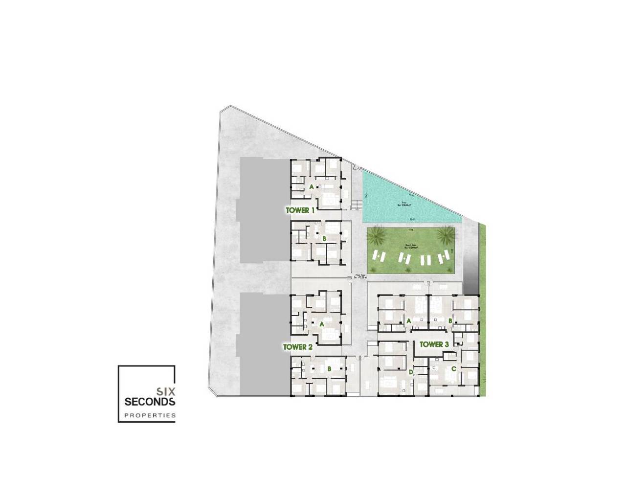 Sumérgete en el ambiente de las zonas comunes, donde encontrarás espacios verdes exuberantes y una fantástica piscina con una bomba de calor que te permite disfrutar de ella durante todo el año. Estos apartamentos están disponibles en configuraciones de tres o dos dormitorios, todos ellos con dos baños y amplias terrazas.