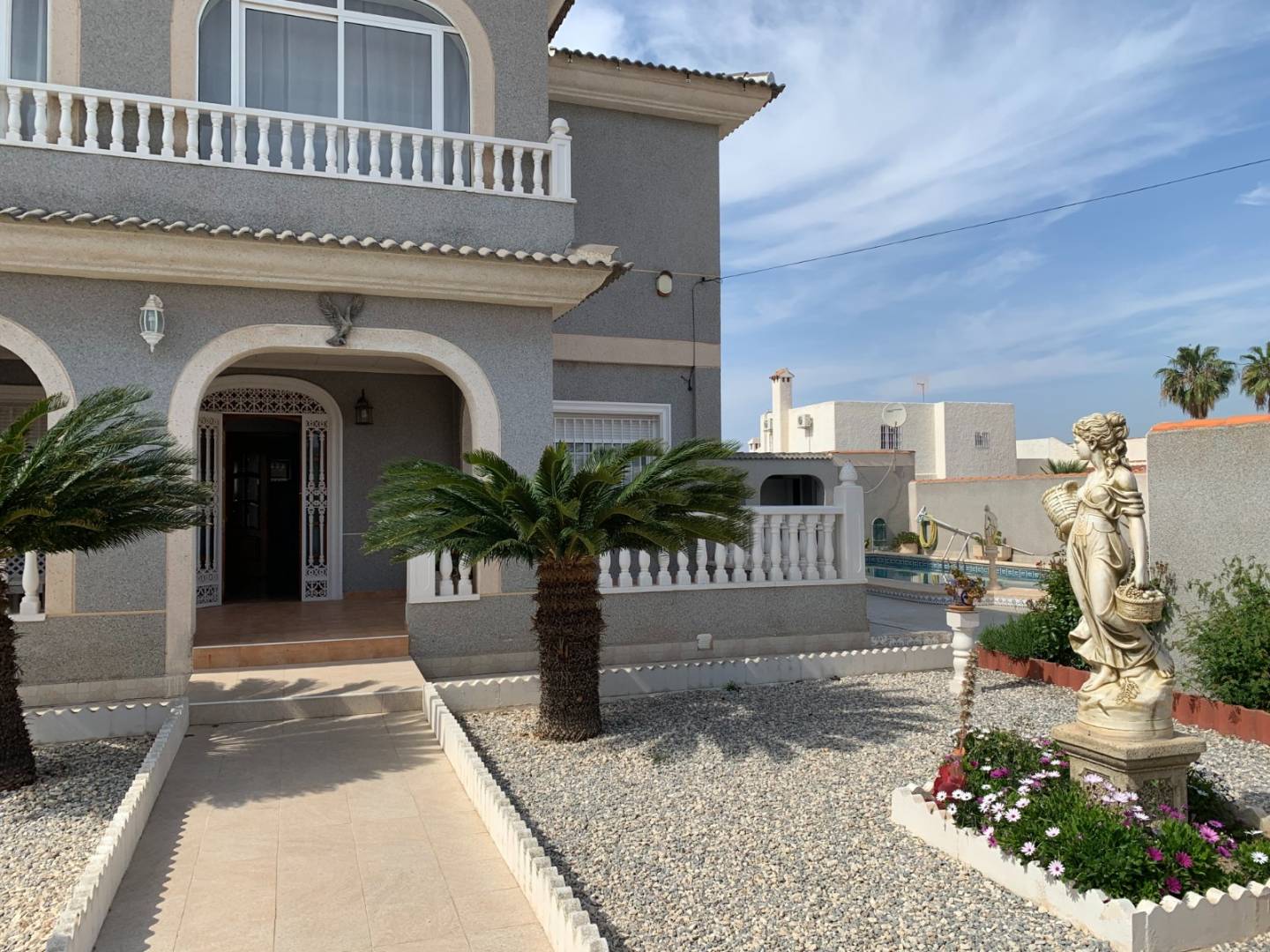 Nos complace presentarle una villa independiente ubicada en la prestigiosa zona de El Chaparral en Torrevieja. Esta propiedad se encuentra en una parcela de 800 metros cuadrados, y ofrece una gran variedad de características y comodidades que seguramente satisfarán todas sus necesidades y deseos.