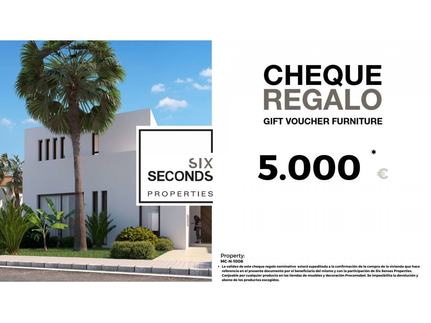 En Six Seconds Properties te ayudamos a convertir tu nueva propiedad en la casa de tus sueños, regalándote un cheque regalo de 5.000€ en mobiliario y una visita técnica de la vivienda, donde nuestro equipo técnico te aconsejará sobre las posibilidades de mejora de la vivienda. Totalmente gratis!!