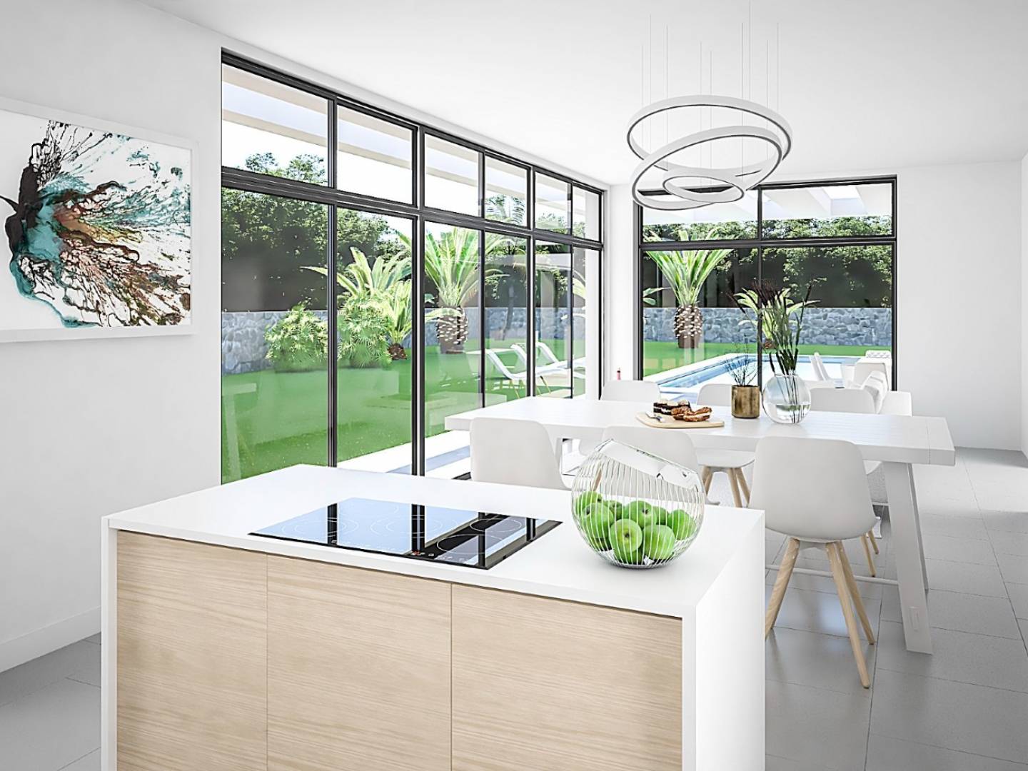 Una villa luminosa de dos pisos, con 3 dormitorios y 2 baños modernos. El nivel principal consta de una sala de estar, un comedor y una cocina de concepto abierto, así como dos modernas habitaciones con baño. Los grandes ventanales hacen que este piso sea luminoso y espacioso con vistas a la terraza, el jardín y la piscina. Arriba encontrará el dormitorio principal y su baño en suite y su acceso a una terraza privada.