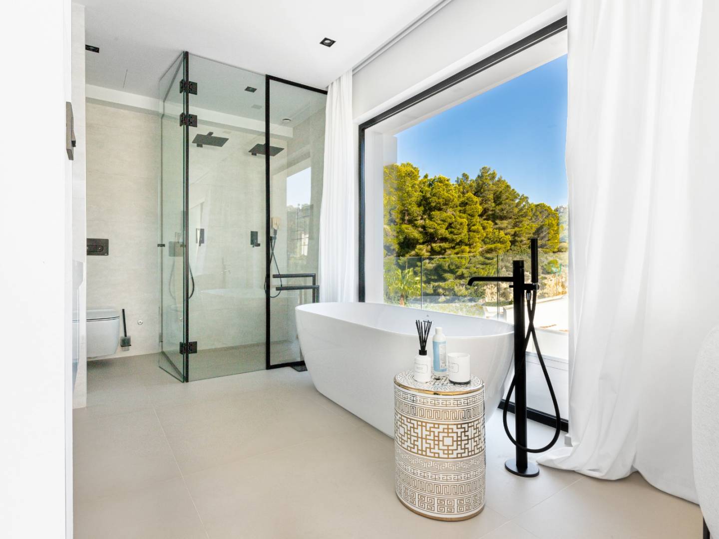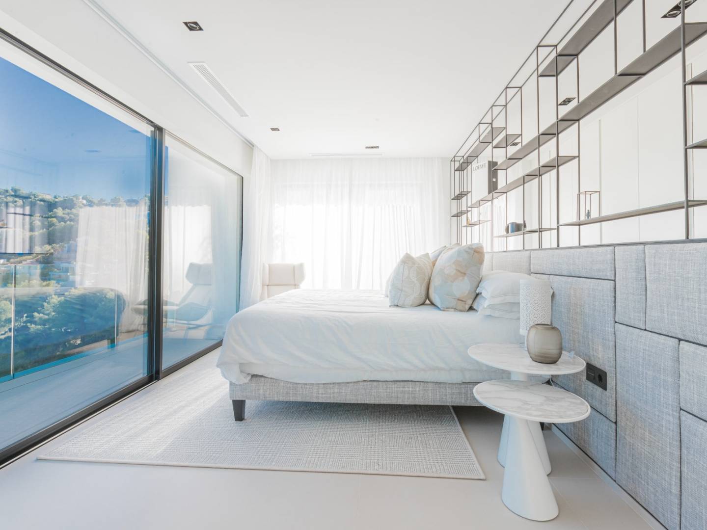 En la planta superior tenemos un exclusivo dormitorio principal con baño en suite y dos dormitorios más con baño en suite. Todos ellos con unas vistas formidables.