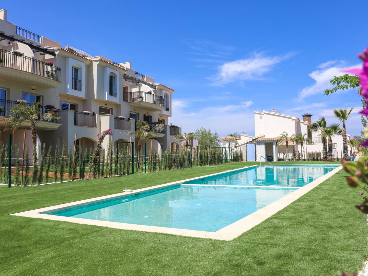 Este apartamento en planta baja se vende llave en mano y consta de 2 dormitorio y 1 baño, cocina, amplio salón, terraza, jardín y habitación independiente con conexión para lavadora. Además cuenta con suministro de agua caliente mediante caldera con placa solar. Los apartamentos ofrecen instalaciones de primer nivel, plazas de aparcamiento privadas y piscina comunitaria.
