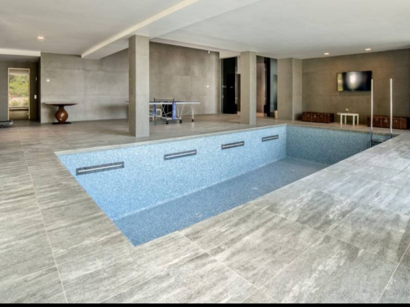 La planta baja alberga un santuario de bienestar: un gran salón-comedor cocina, piscina cubierta, jacuzzi, gimnasio, salón de belleza con peluquería, sauna finlandesa y turca, ducha doble y bodega. También, un apartamento de servicio y una zona dedicada a los huéspedes con amplios dormitorios, sala de juegos, cine, oficina y lavadero.