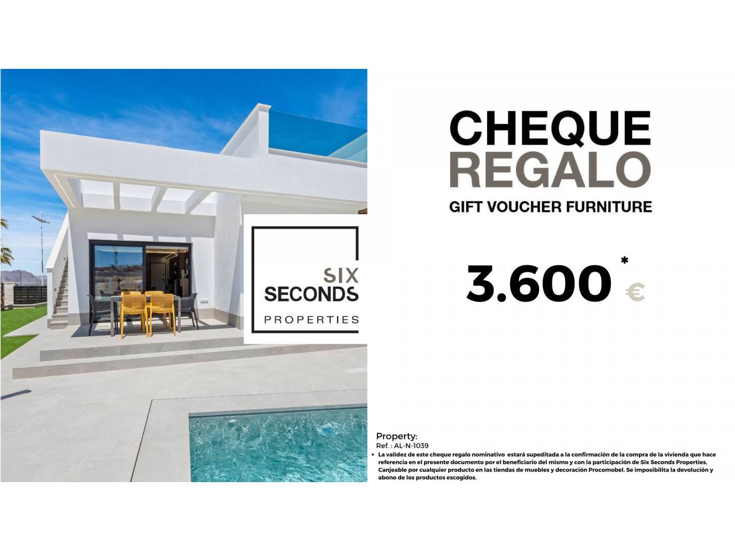En Six Seconds Properties te ayudamos a convertir tu nueva propiedad en la casa de tus sueños, regalándote un cheque regalo en mobiliario de 3.600 € y una visita técnica de la vivienda, donde nuestro equipo técnico te aconsejará sobre las posibilidades de mejora de la vivienda. Totalmente gratis!!