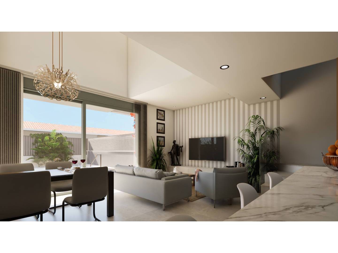 Cada villa cuenta con una moderna cocina abierta, completamente amueblada y equipada con electrodomésticos de alta gama, creando un espacio ideal para compartir momentos en familia o con amigos. La luz natural inunda cada habitación, realzando la amplitud y calidez del hogar.