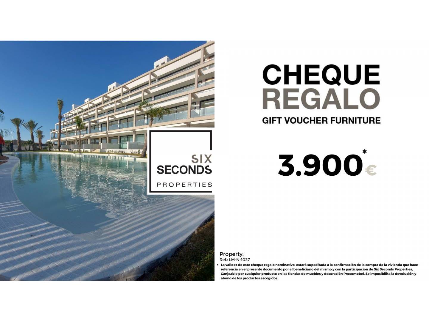 En Six Seconds Properties te ayudamos a convertir tu nueva propiedad en la casa de tus sueños, regalándote un cheque regalo por valor de 3.900€ en mobiliario y una visita técnica de la vivienda, donde nuestro equipo técnico te aconsejará sobre las posibilidades de mejora de la vivienda. Totalmente gratis!!
