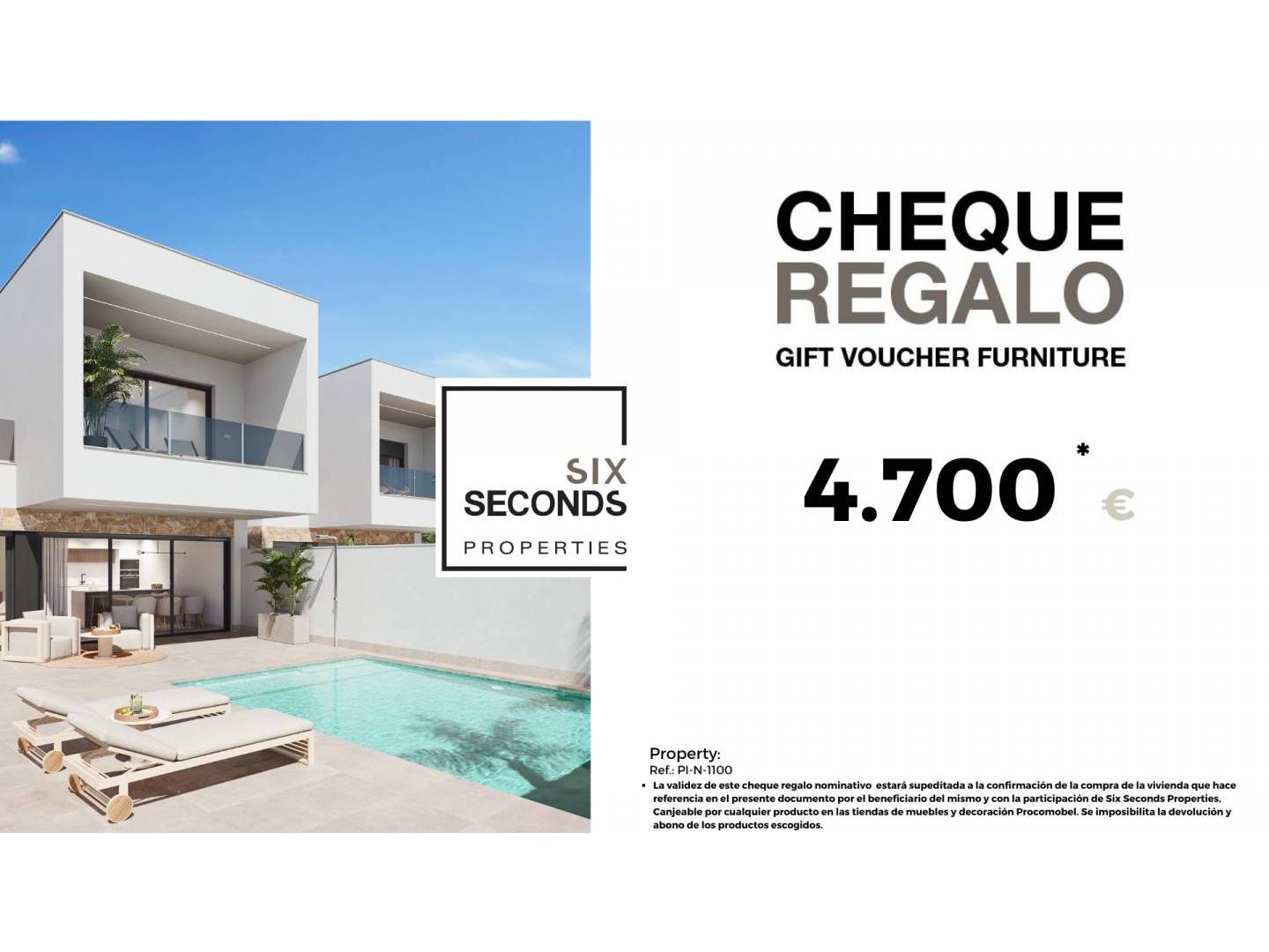 En Six Seconds Properties (965059685) te ayudamos a convertir tu nueva propiedad en la casa de tus sueños, regalándote un cheque regalo en mobiliario de 4.700 € y una visita técnica de la vivienda, donde nuestro equipo técnico te aconsejará sobre las posibilidades de mejora de la vivienda. Totalmente gratis!!