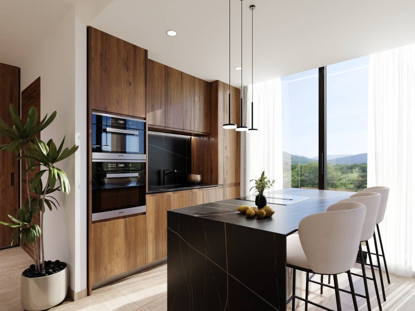 Dentro de este enclave seguro se encuentra esta promoción, donde forma parte de un grupo residencial semicerrado con villas dispuestas alrededor de jardines paisajísticos y piscinas compartidas, creando un refugio sereno. Esta moderna villa independiente de cuatro dormitorios combina lujo, confort y encanto mediterráneo en dos niveles optimizados para espacio y funcionalidad.