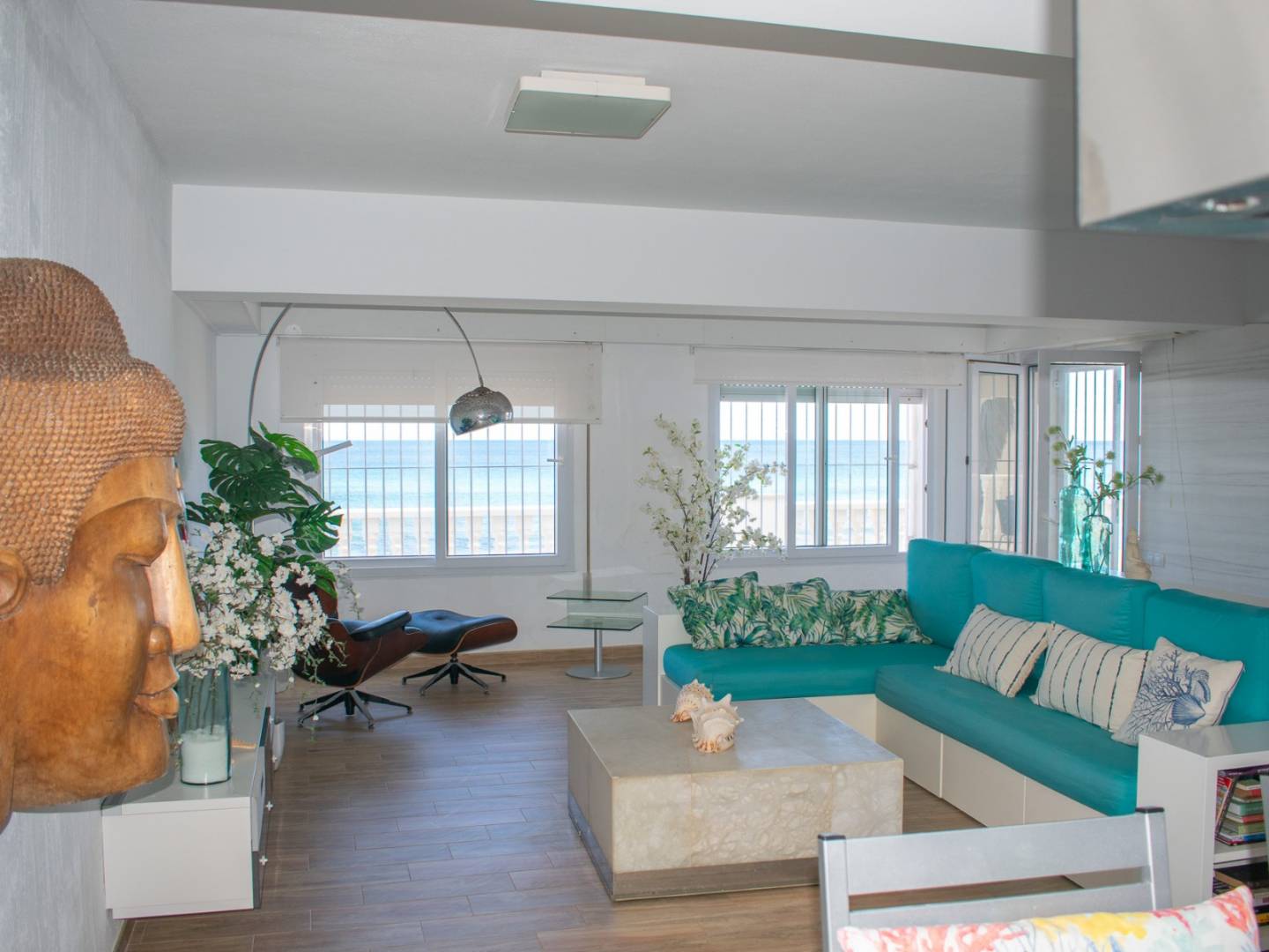 Destacan sus acabados de alta calidad, con suelos de imitación madera y paredes de mármol. Desde el salón, se accede a una espectacular terraza con vistas panorámicas al Mar Mayor, un auténtico mirador al paraíso.