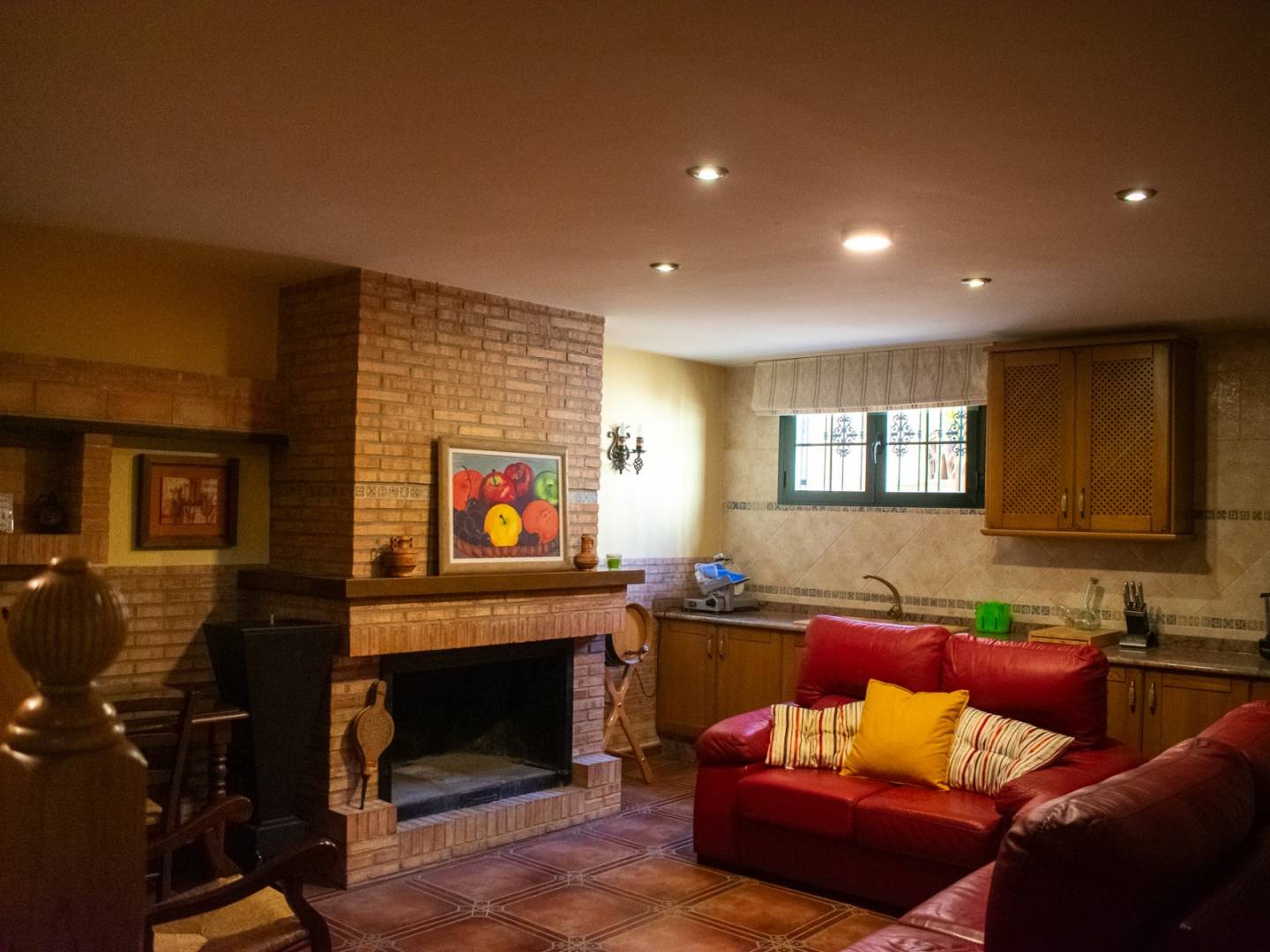 En el sótano, la vivienda dispone de un gran salón con cocina y chimenea, ideal para reuniones. También cuenta con una sala de almacenamiento de leña, un trastero y una zona para guardar comida.