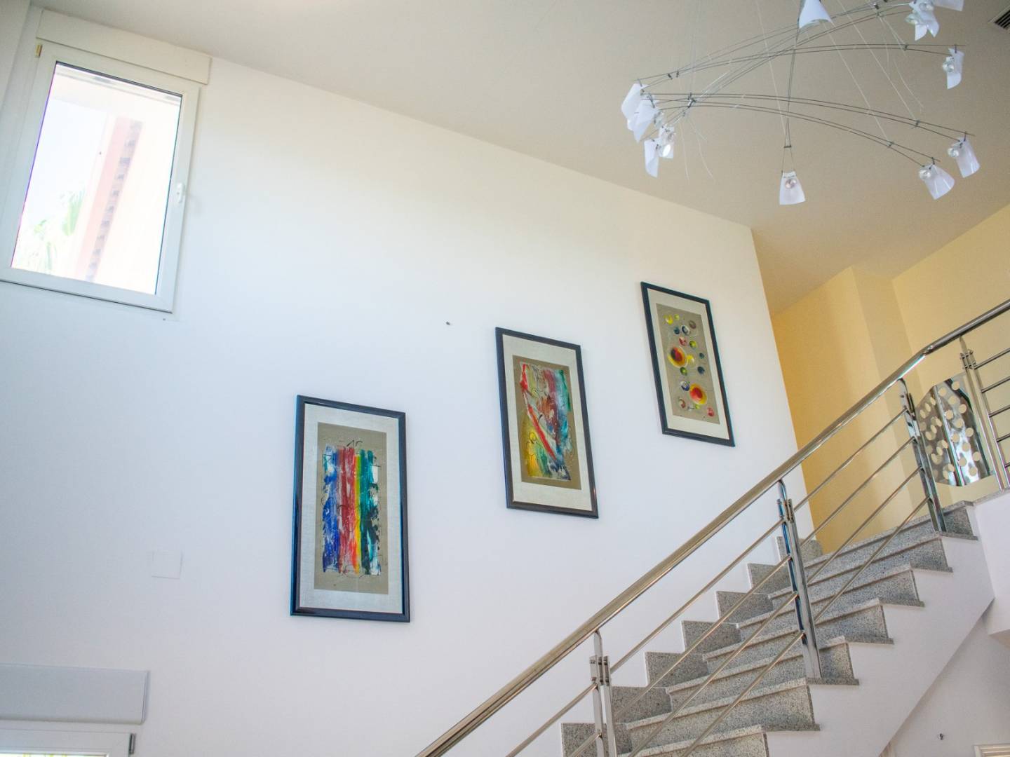 En el exterior, una encantadora piscina privada se integra con el entorno, rodeada de un exuberante jardín con servicio de mantenimiento profesional y una amplia zona de barbacoa, perfecta para reuniones sociales al aire libre o momentos de relax bajo el sol. Gracias a su orientación este, la propiedad recibe luz solar durante todo el día, lo que se complementa con sus vistas panorámicas a las salinas, al mar y a la bahía de Santa Pola, creando un entorno privilegiado de belleza y tranquilidad.