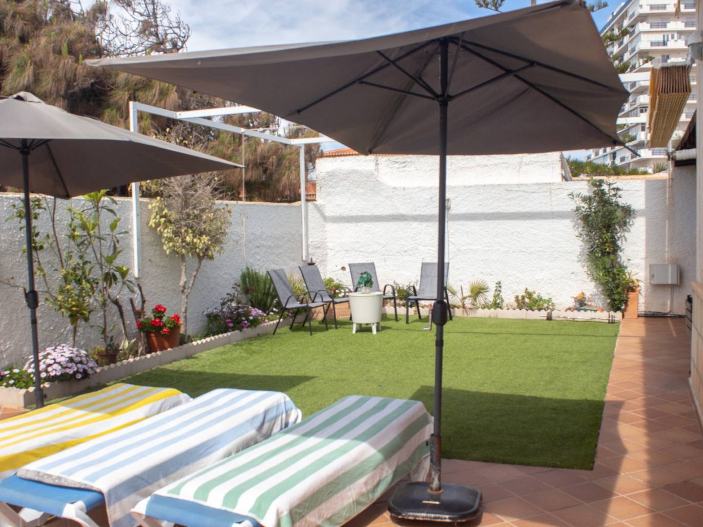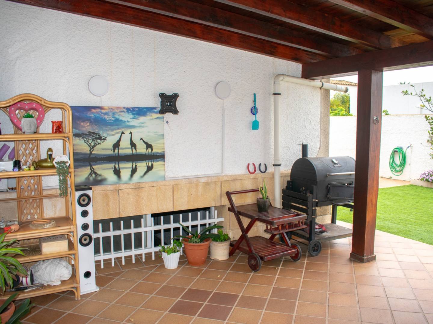 En el exterior, la villa dispone de una encantadora piscina privada, fantástica zona de barbacoa, espacio ajardinado y área de solárium, convirtiendo el entorno en un verdadero oasis para disfrutar del clima mediterráneo durante todo el año.