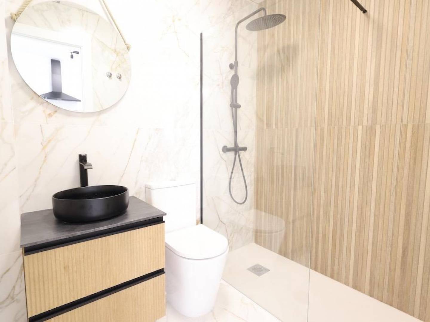 La planta baja cuenta con 2 dormitorios, 1 baño completo, una cocina abierta al salón con zona de lavandería y un amplio salón-comedor muy luminoso. En la planta alta, con entrada independiente, se encuentra una segunda vivienda compuesta por 1 dormitorio, 1 baño, cocina y un acogedor salón con acceso a una terraza privada de 14,5 m², ideal para disfrutar del sol mediterráneo o recibir invitados con total privacidad.