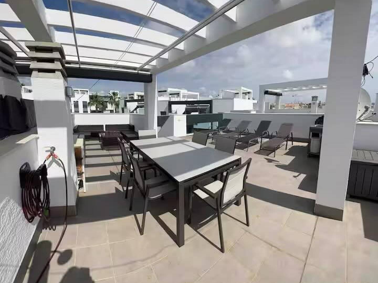 Descubra este acogedor bungalow en planta alta ubicado en uno de los codiciados residenciales de Punta Prima. Esta propiedad amueblada representa una excelente inversión tanto para el disfrute personal como para el alquiler vacacional.