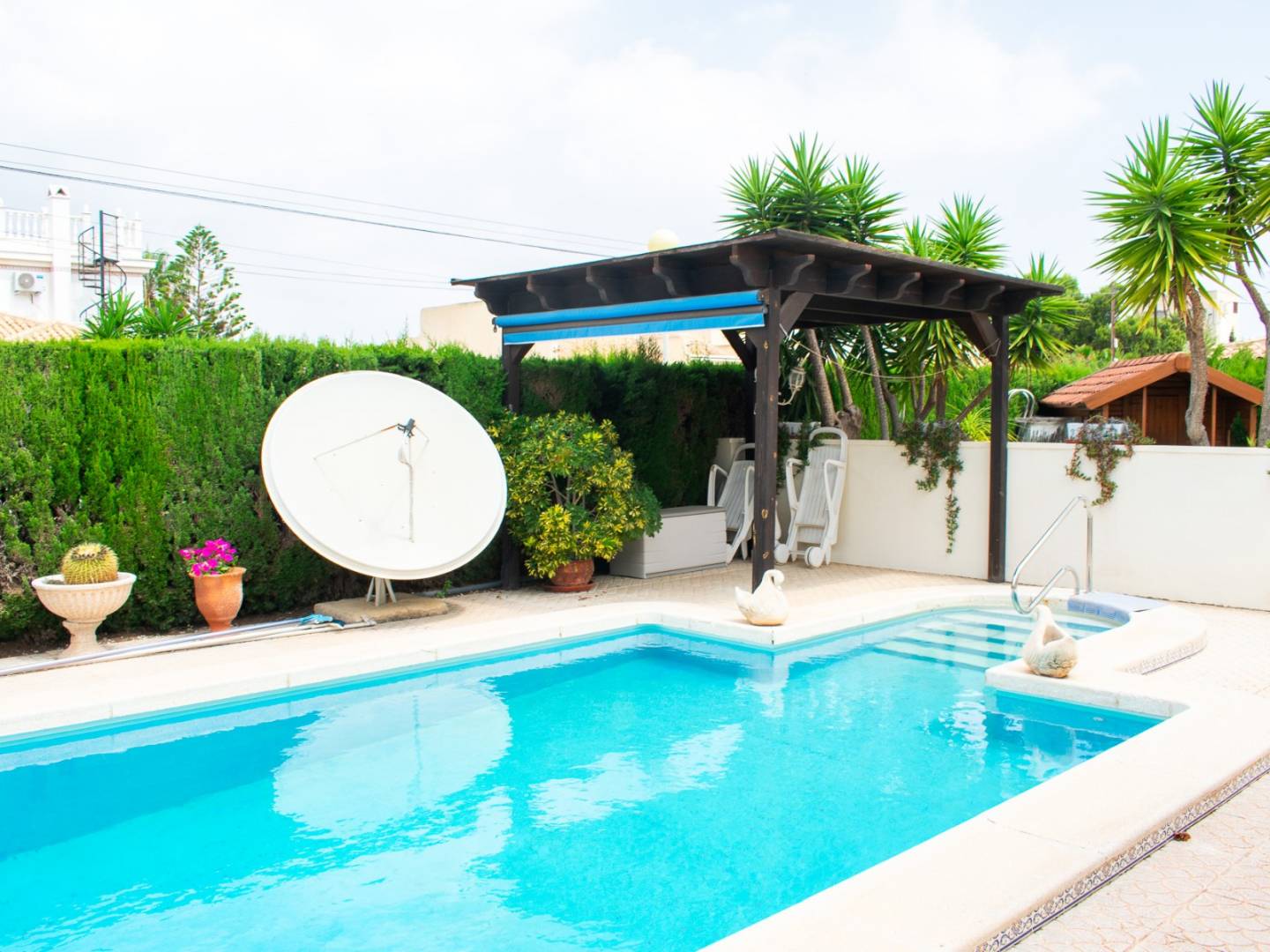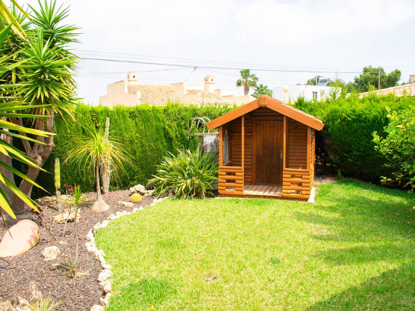 En el exterior, la villa cuenta con un amplio jardín, una encantadora piscina privada, zona de barbacoa, garaje, y trastero, todo perfectamente diseñado para disfrutar del clima mediterráneo los más de 300 días de sol al año. La orientación este garantiza luminosidad y ventilación natural en todas las estancias.