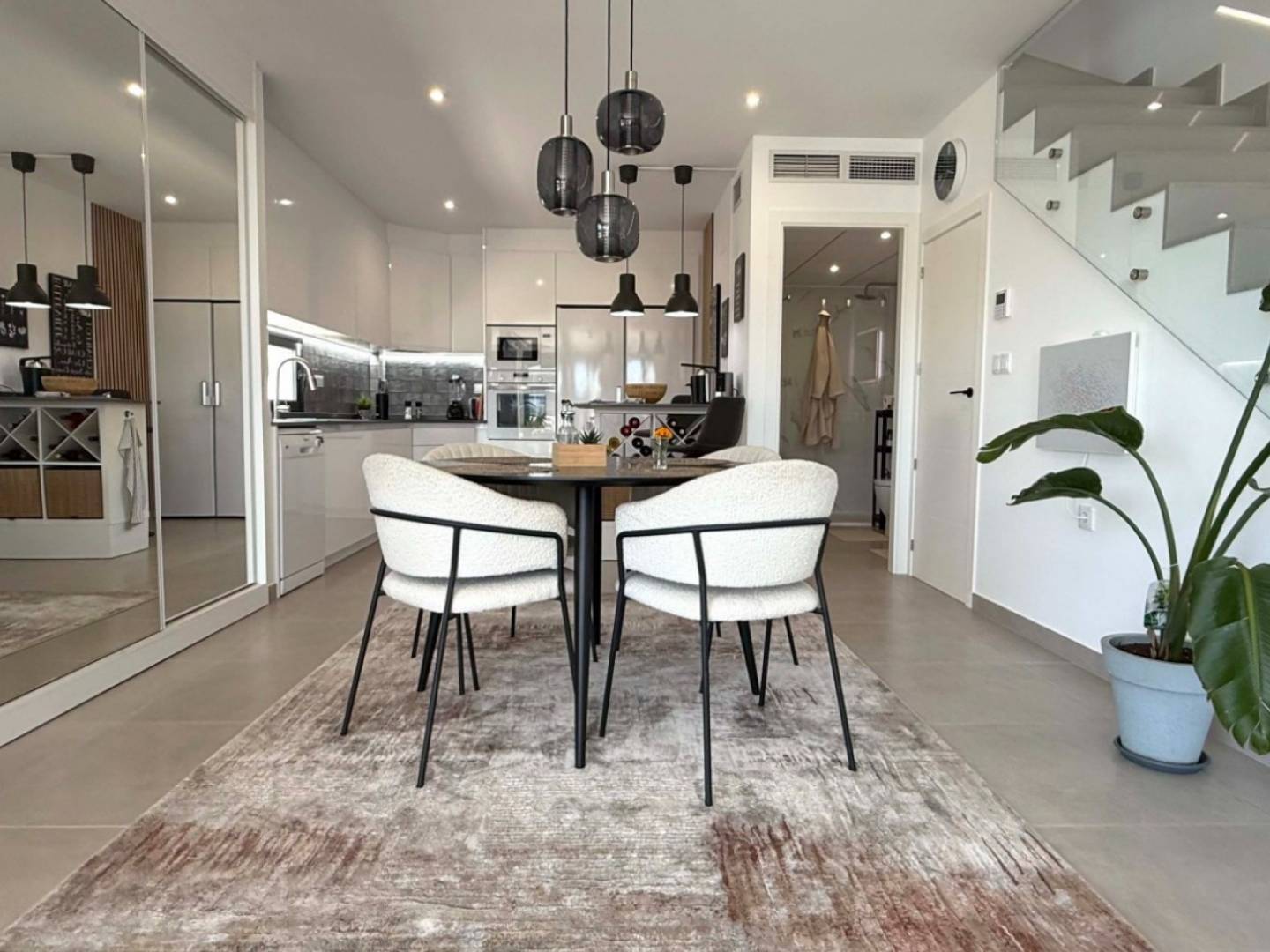 El gran solárium es un auténtico oasis privado, equipado con cocina exterior, iluminación ambiental y una elegante pérgola, ideal para disfrutar del clima mediterráneo durante todo el año. La vivienda cuenta con extras como garaje privado con armarios a medida, escalera exterior al solárium, reguladores de luz, enchufes adicionales distribuidos estratégicamente, y puertas correderas en el salón que potencian la entrada de luz natural.