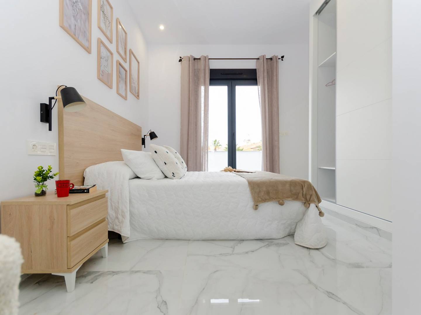 Cada vivienda cuenta con 3 dormitorios amplios y 3 baños completos, todos con acabados modernos y funcionales. El confort está asegurado gracias a las persianas motorizadas, armarios empotrados en todas las estancias, preinstalación de aire acondicionado por conductos, y una puerta de entrada de seguridad que garantiza tranquilidad absoluta.