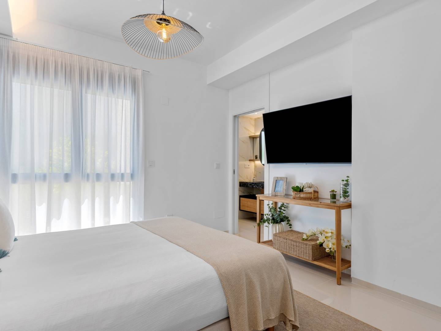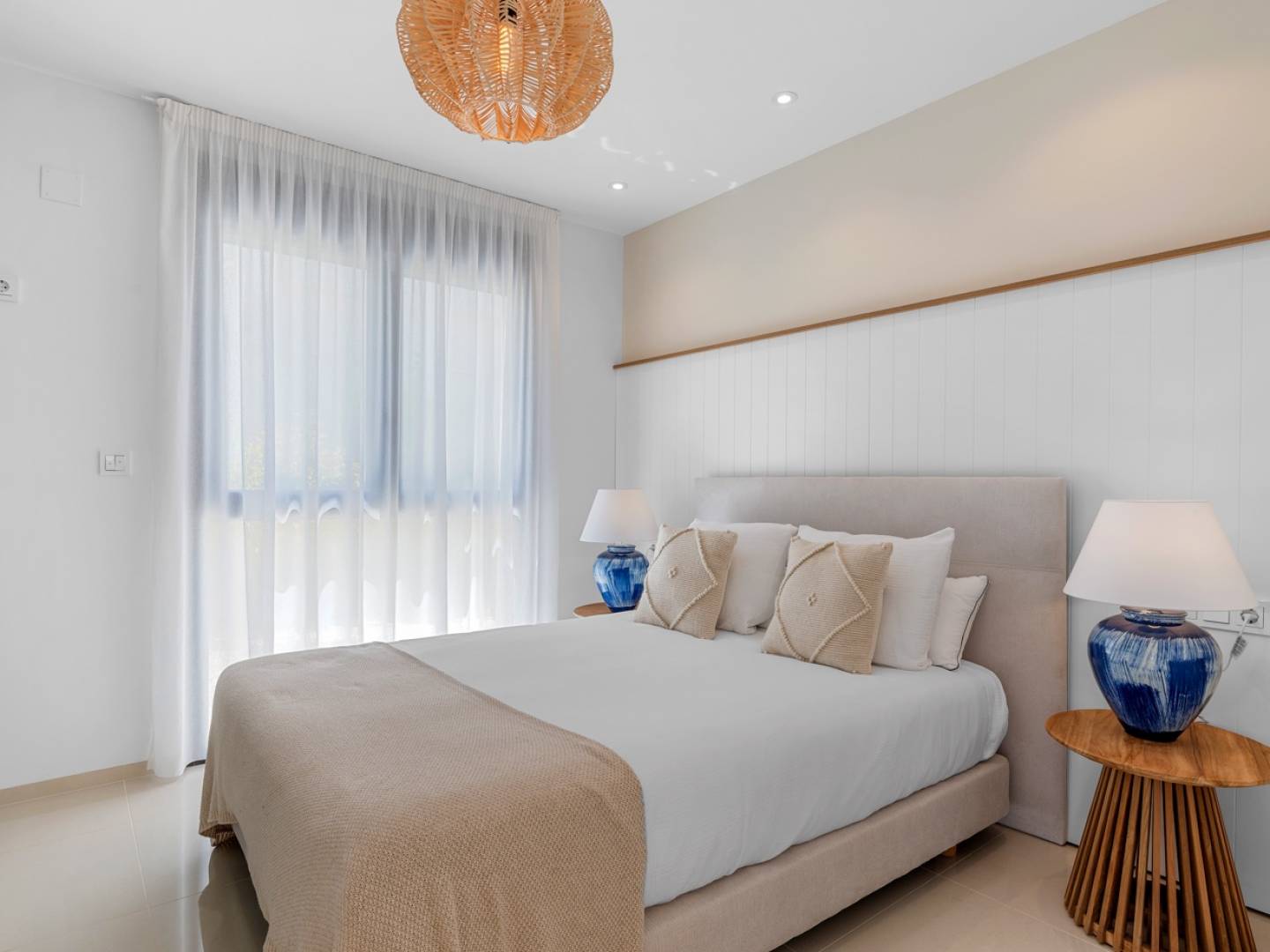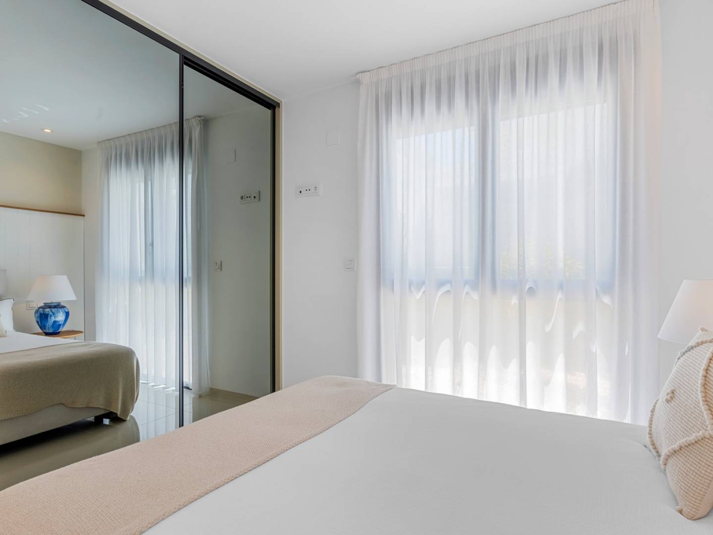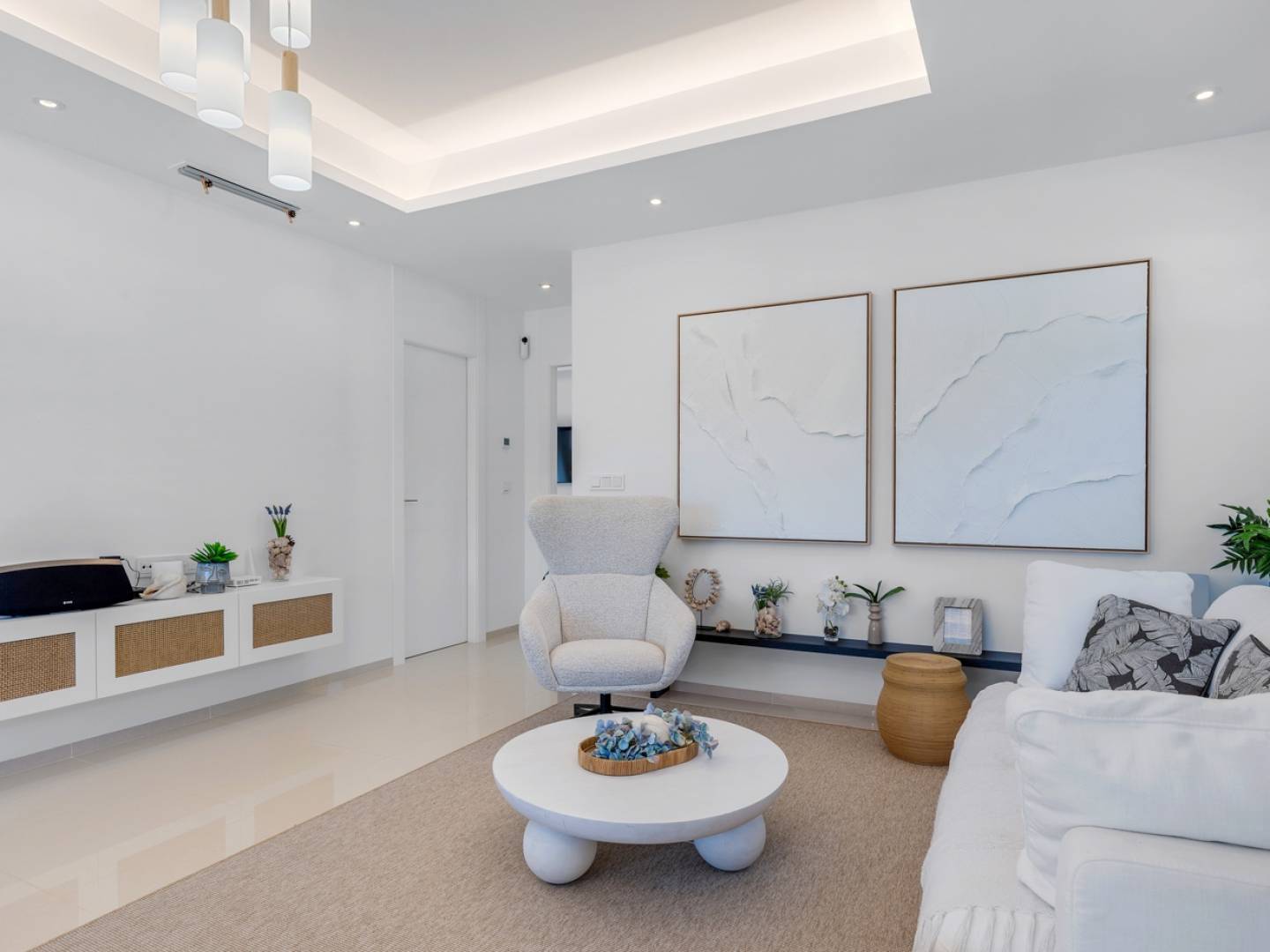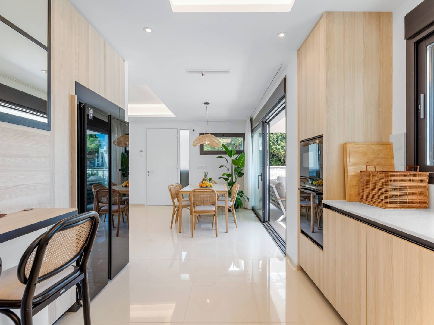 El interior ofrece una distribución cuidadosamente pensada, con un amplio salón-comedor bañado en luz natural y una cocina de concepto abierto que se conecta directamente con la terraza, ideal para disfrutar del estilo de vida mediterráneo. Cuenta con tres dormitorios y dos baños, uno de ellos en suite dentro del dormitorio principal, además de un práctico lavadero con salida al exterior.